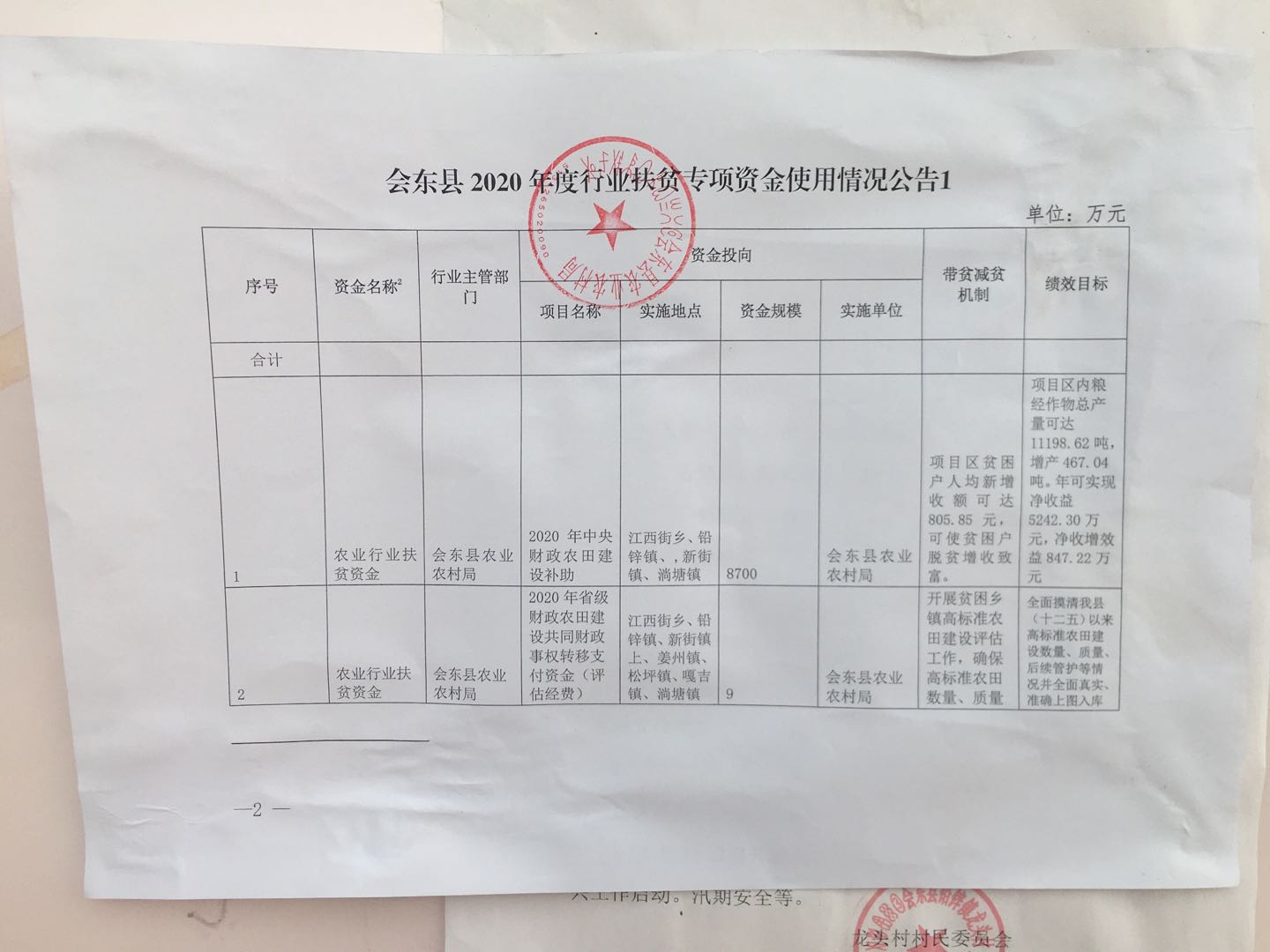 铅锌镇龙头村2020年度行业扶贫专项资金使用情况公告