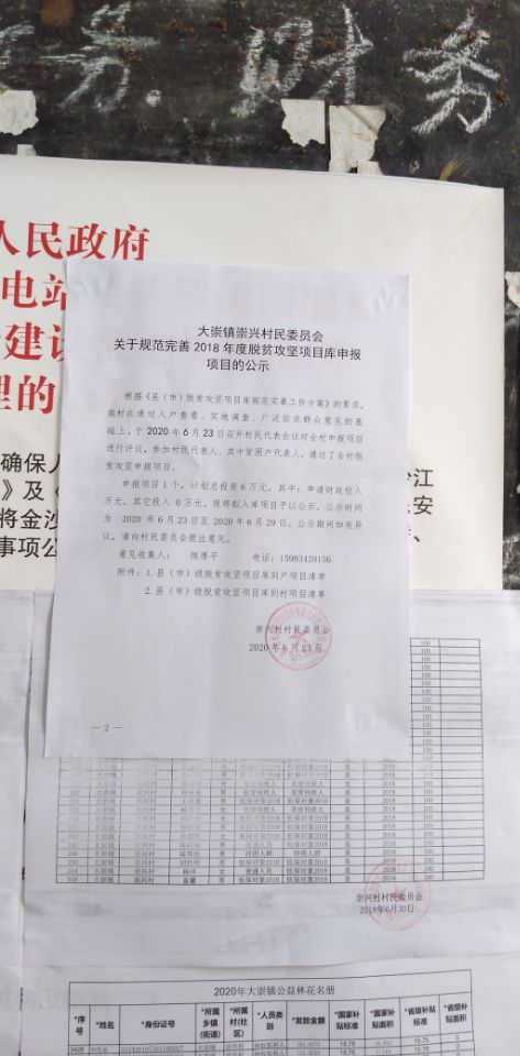 现将经2020年 6月 23日 崇兴村村民代表大会讨论通过的拟实施扶贫项目进行公示,公示时间为 2020 年 6月23日至2020年6月23日,如对以下公示内容有异议,请于公示期内向村委会反映。