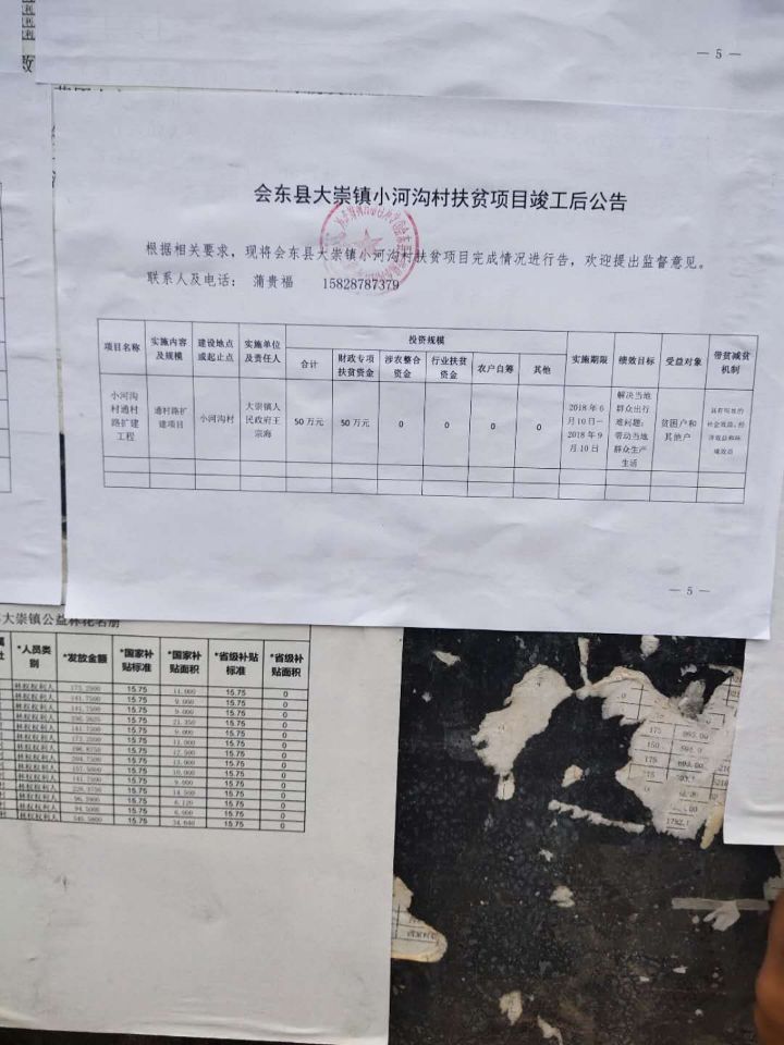 会东县大崇镇小河沟村扶贫项目竣工后公告