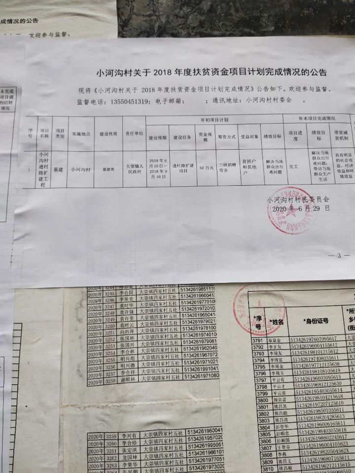 小河沟村关于2018年度扶贫资金项目计划完成情况的公告