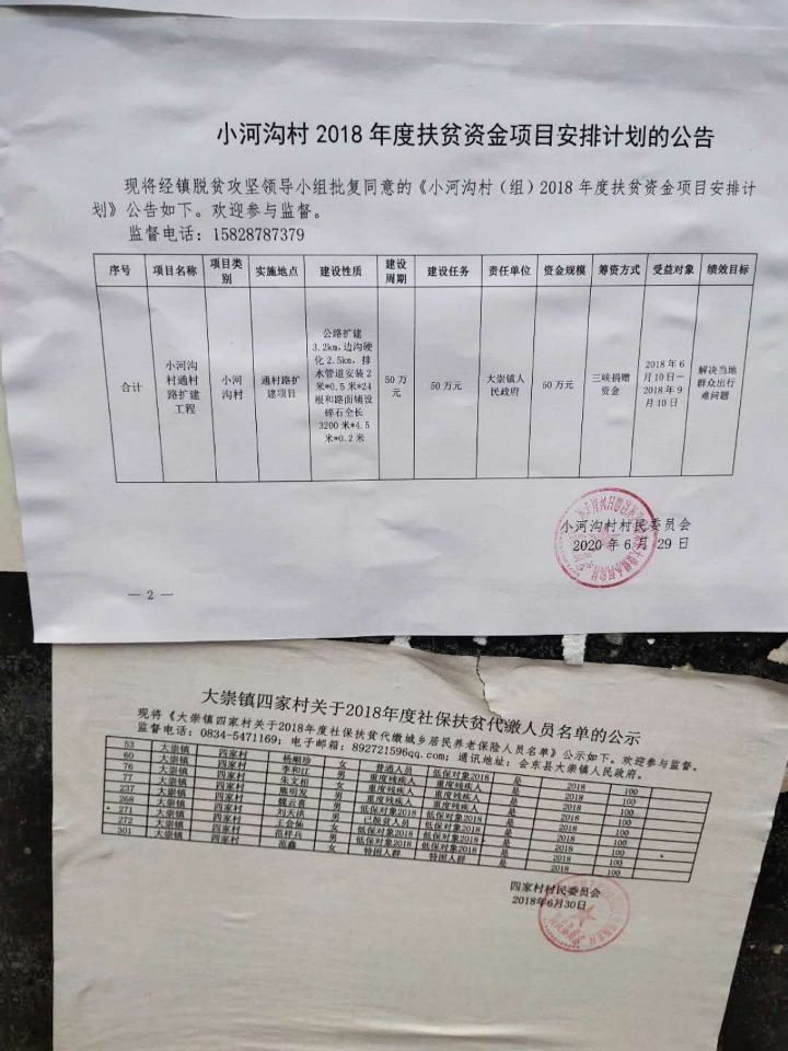 小河沟村2018年度扶贫资金项目安排计划的公告
