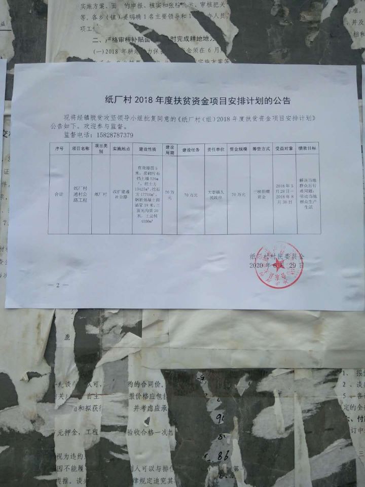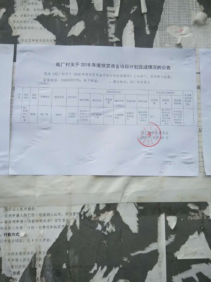 纸厂村关于2018年度扶贫资金项目计划完成情况的公告