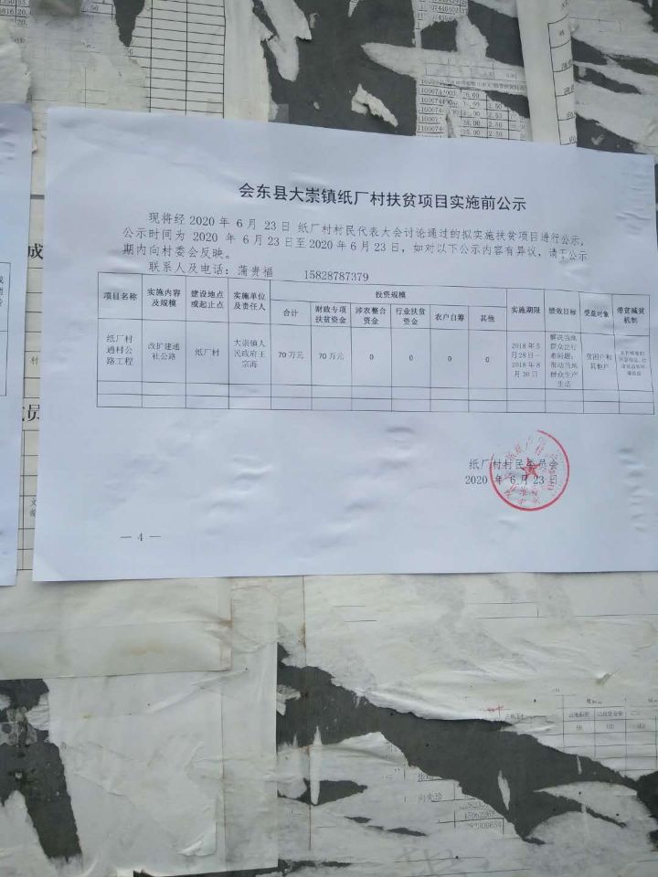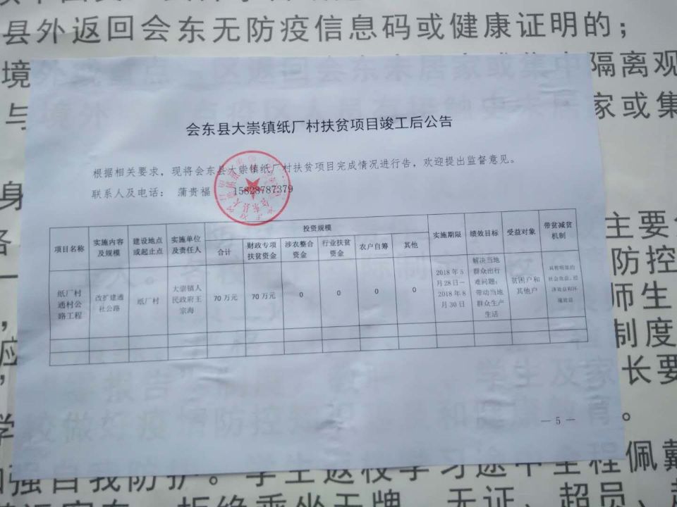 根据相关要求,现将会东县大崇镇纸厂村扶贫项目完成情况进行告,欢迎提出监督意见。