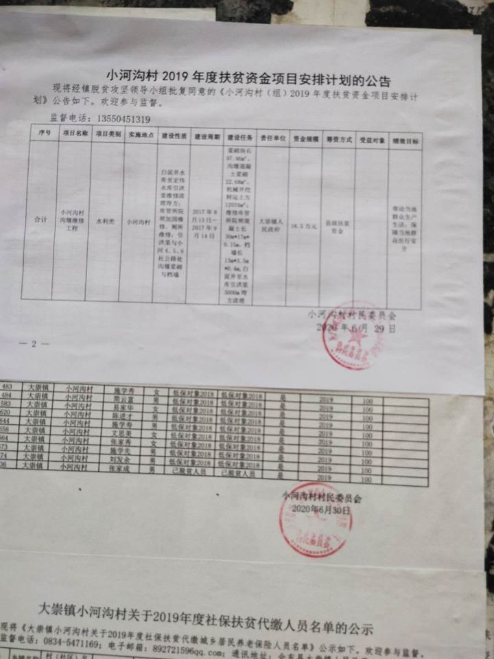 小河沟村关于2019年度扶贫资金项目计划完成情况的公告