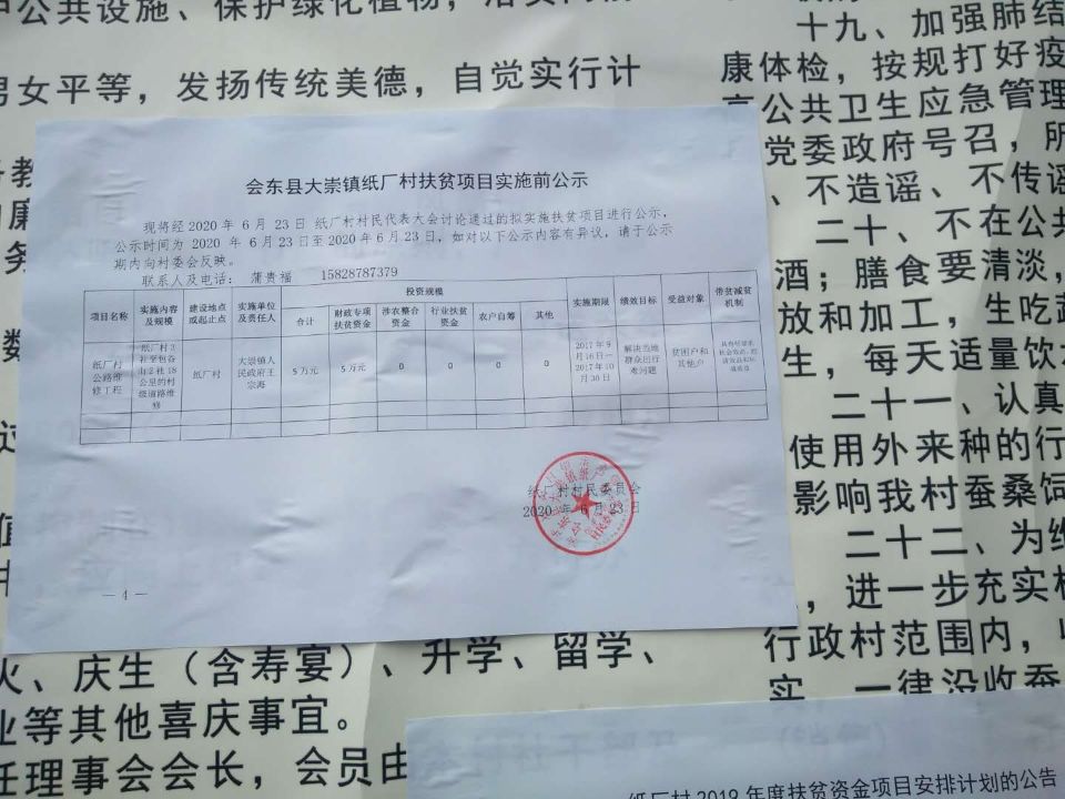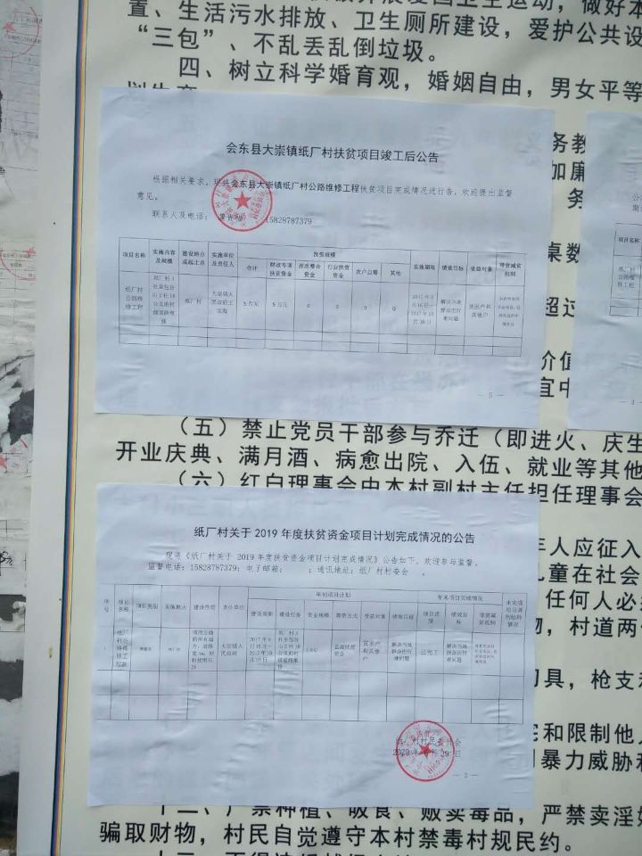 会东县大崇镇纸厂村扶贫项目竣工后公告