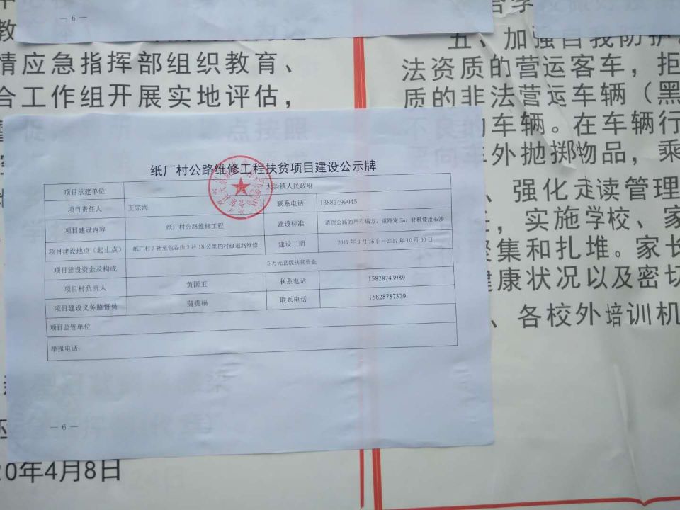 监督电话:15828787379;电子邮箱: ;通讯地址:纸厂村村委会 。
