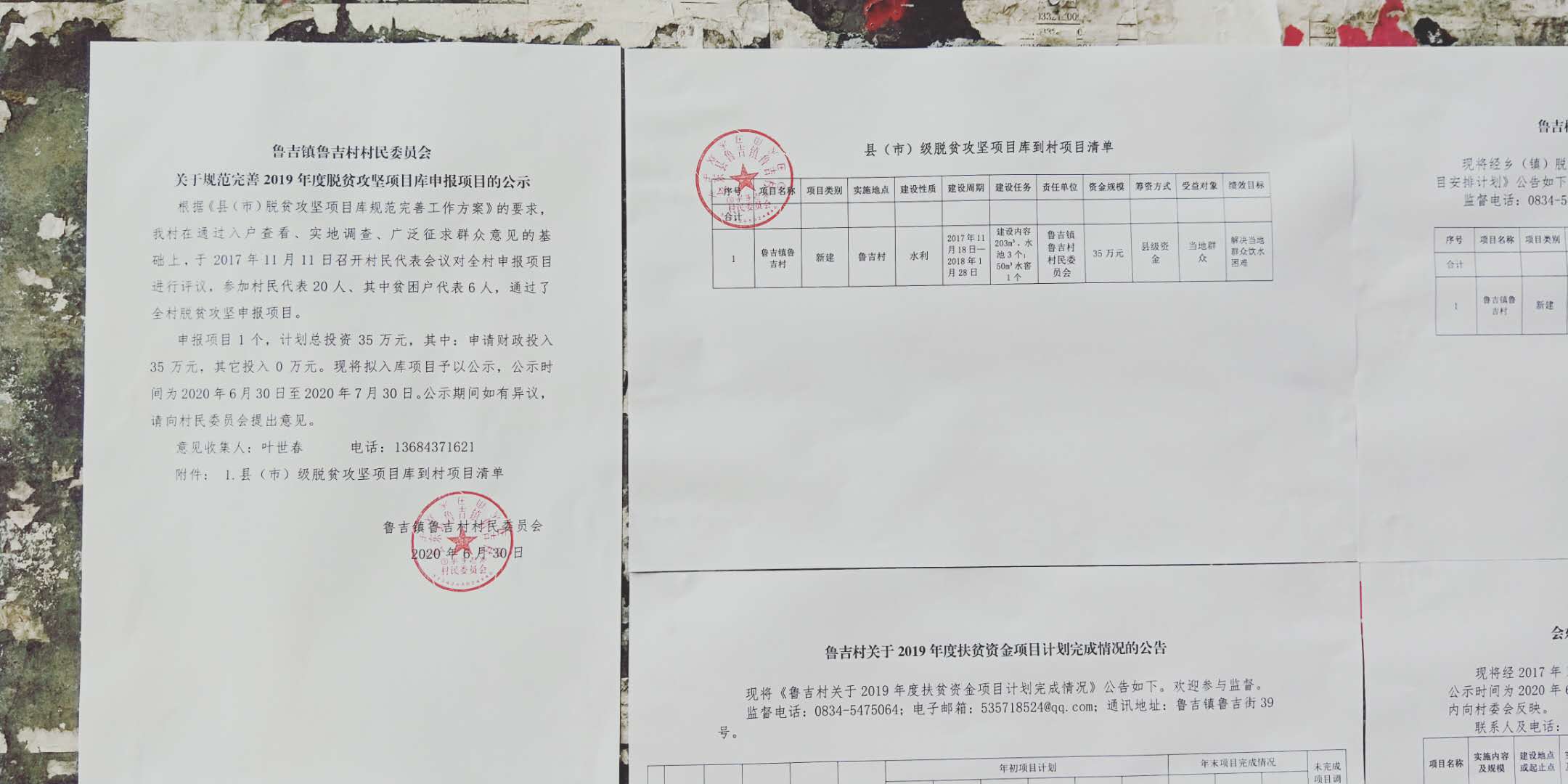 鲁吉村关于2019年度扶贫资金项目计划完成情况的公告