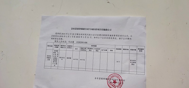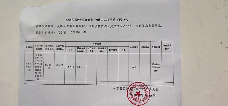联合村2019年度专项扶贫资金项目公告公示(篮球场修建)
