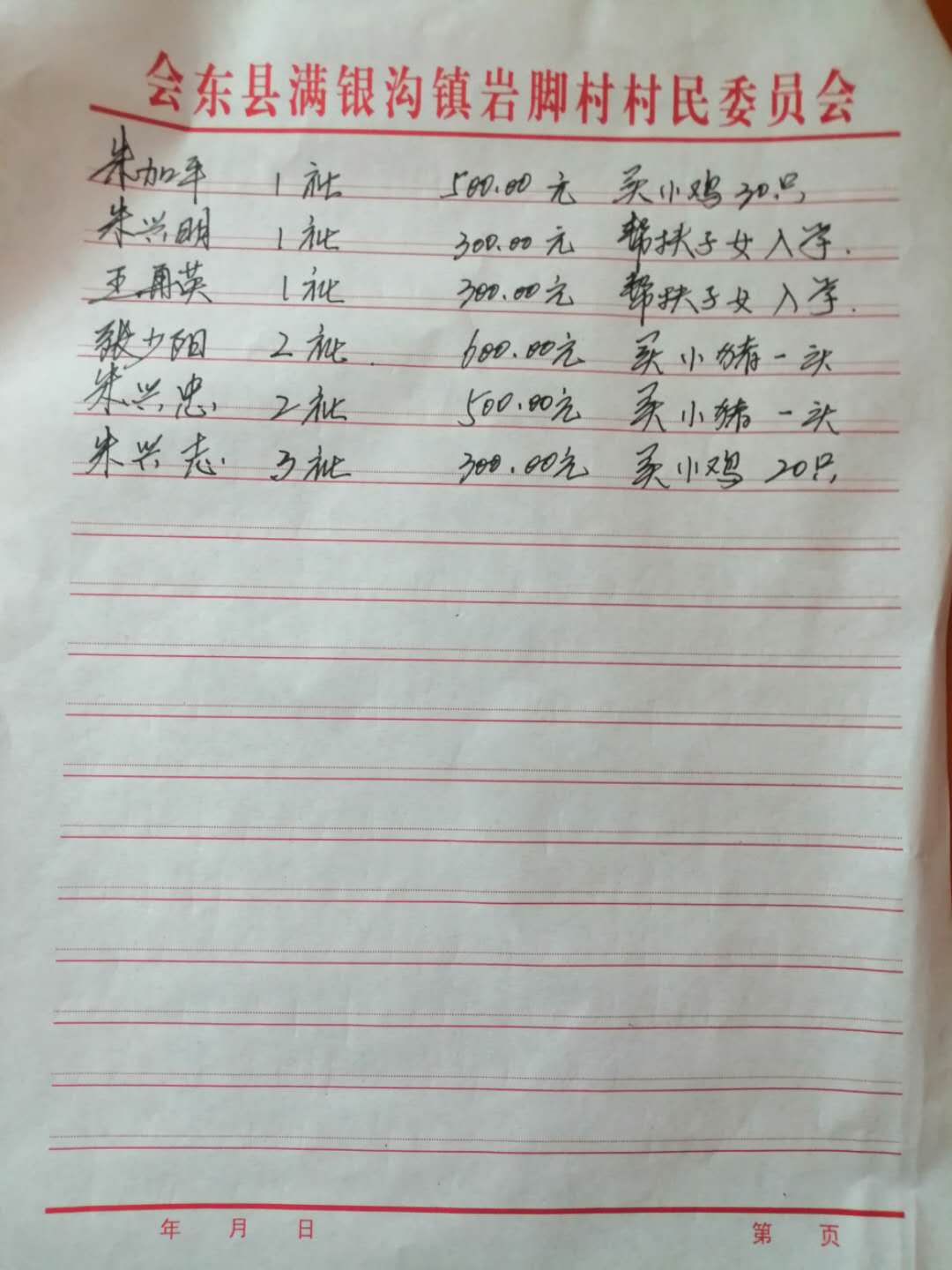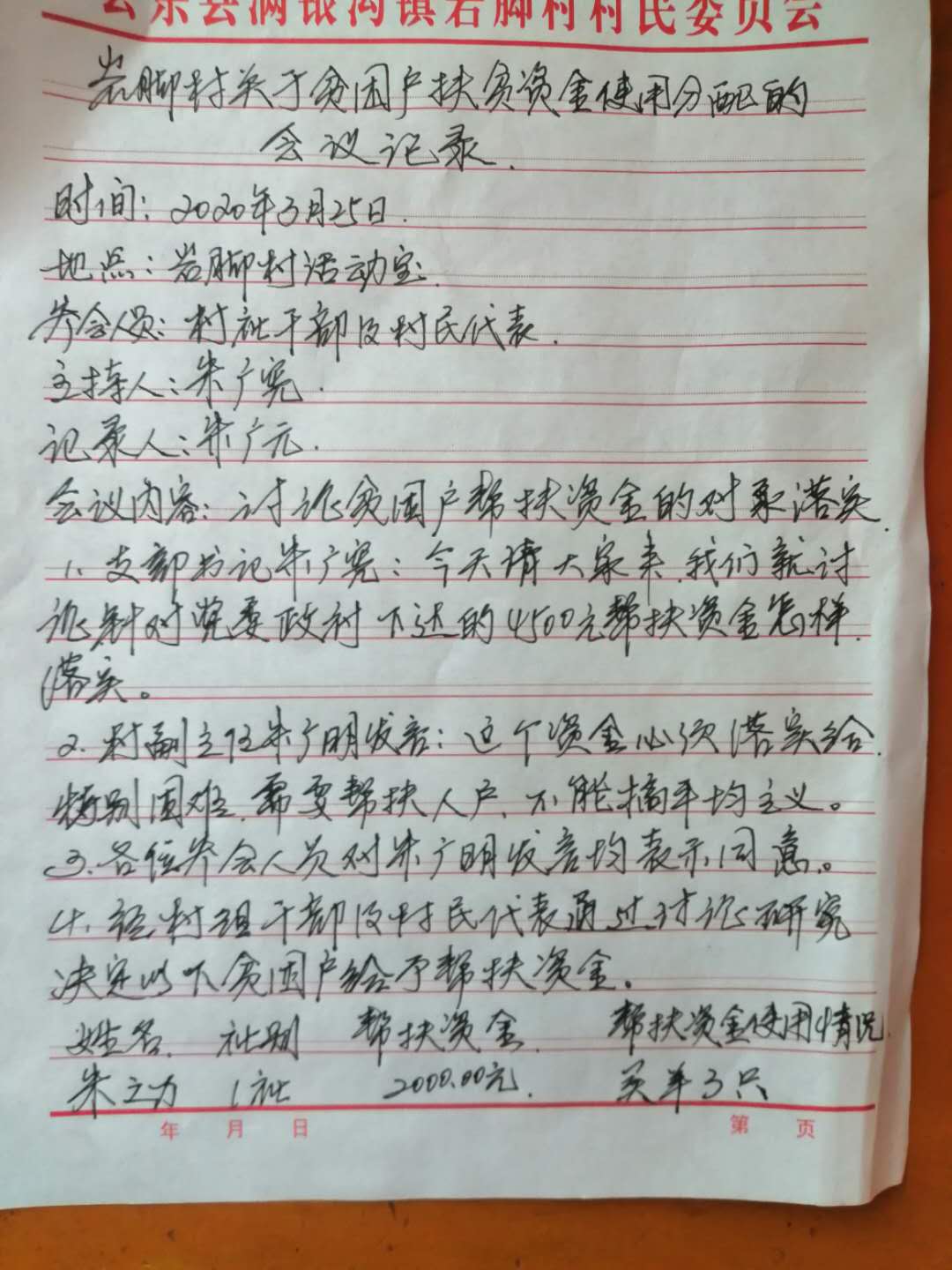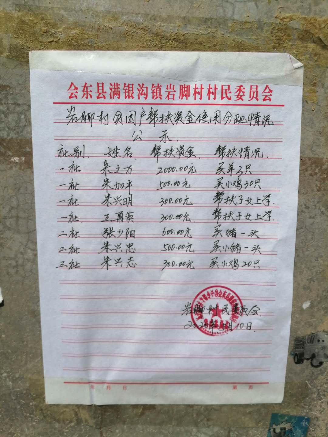 岩脚村产业扶贫资金公示