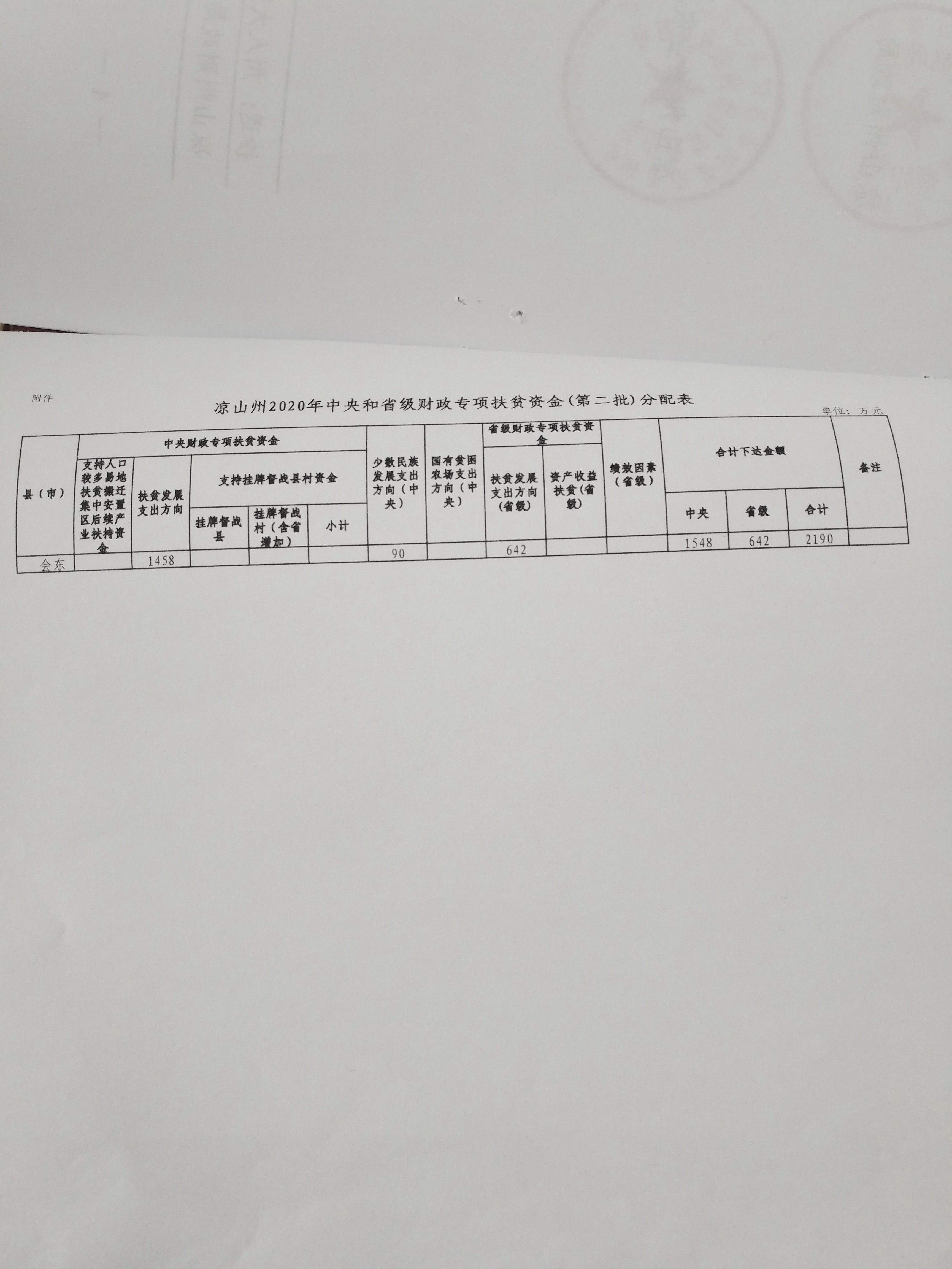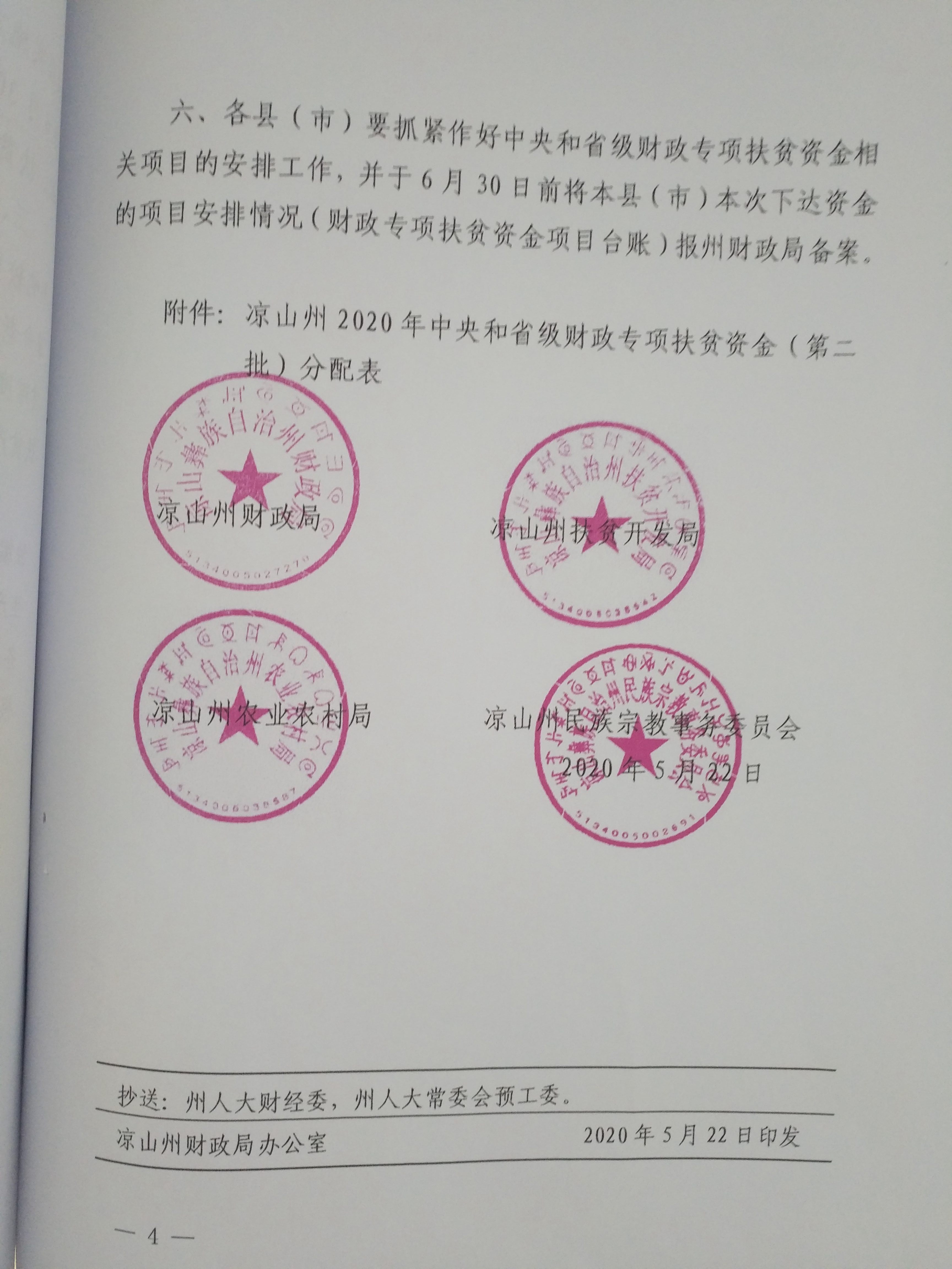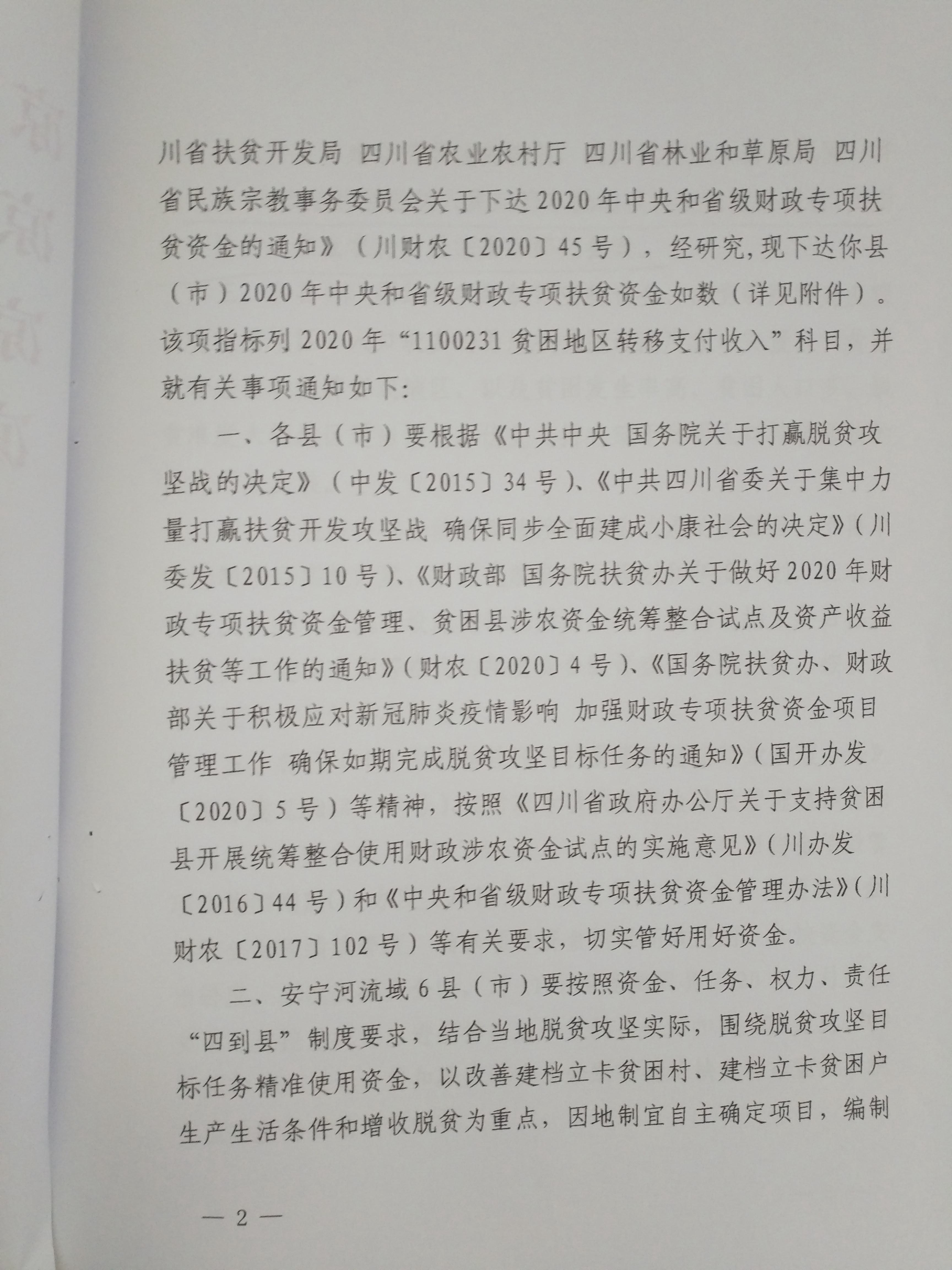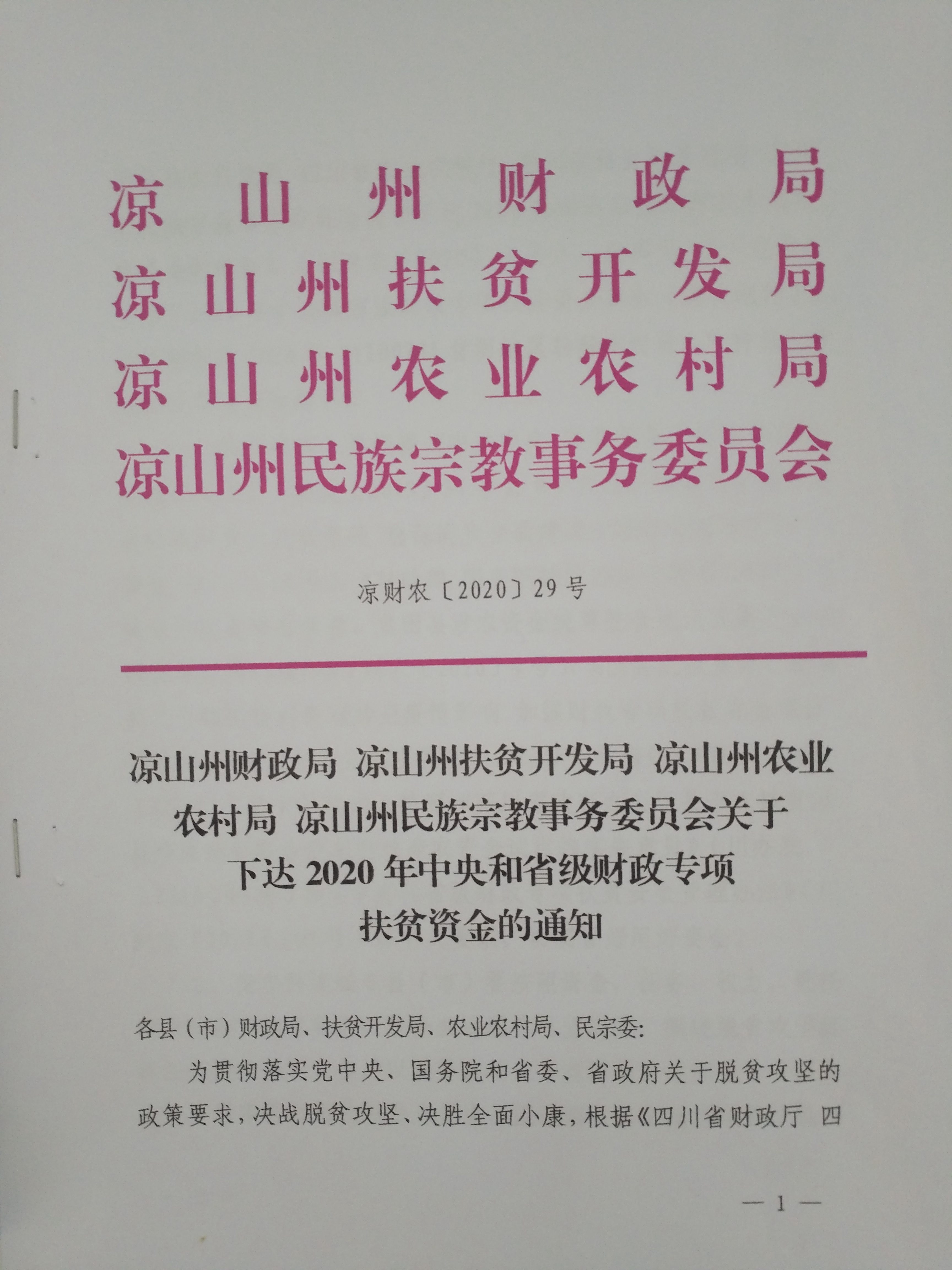 凉山州财政局 凉山州扶贫开发局 凉山州农业农村局 凉山州民族宗教事务委员会关于下达2020年中央和省级财政专项扶贫资金的通知