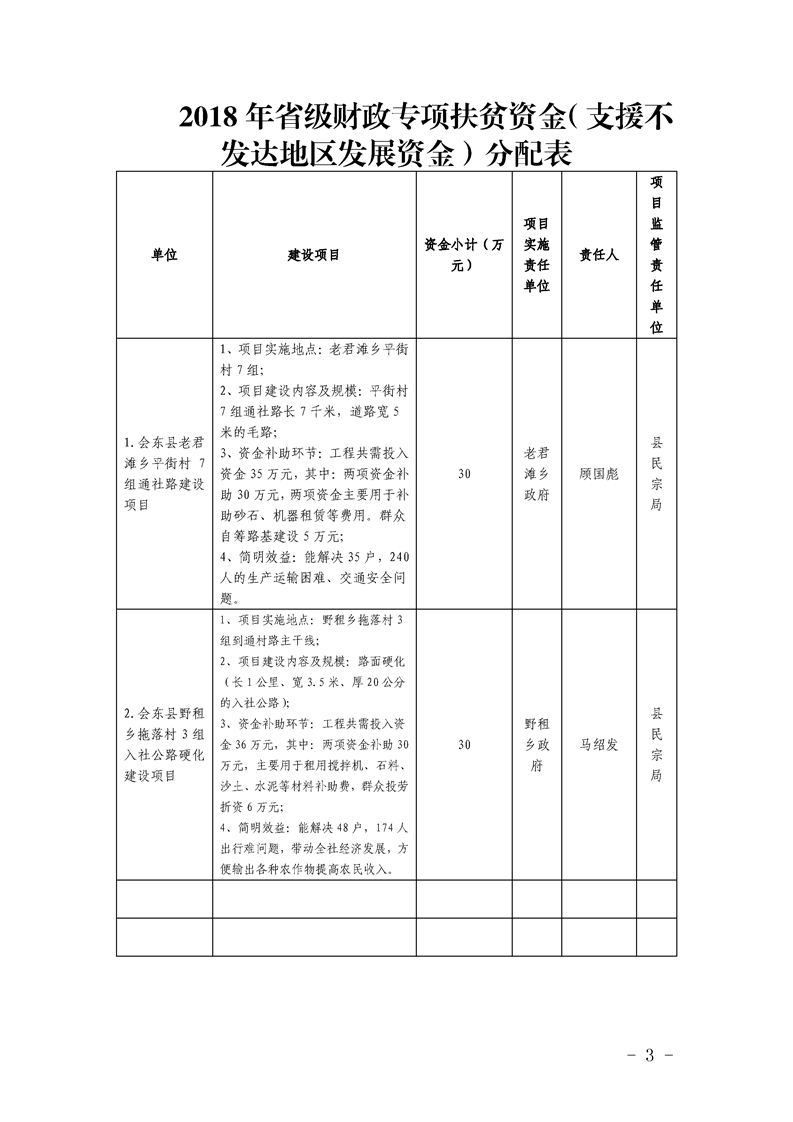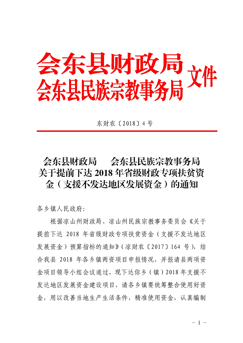 会东县财政局 会东县民族宗教事务局 关于提前下达2018年省级财政专项扶贫资金(支援不发达地区发展资金)的通知
