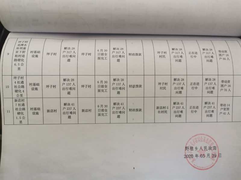 野租乡2020年扶贫资金项目计划完成情况公告12