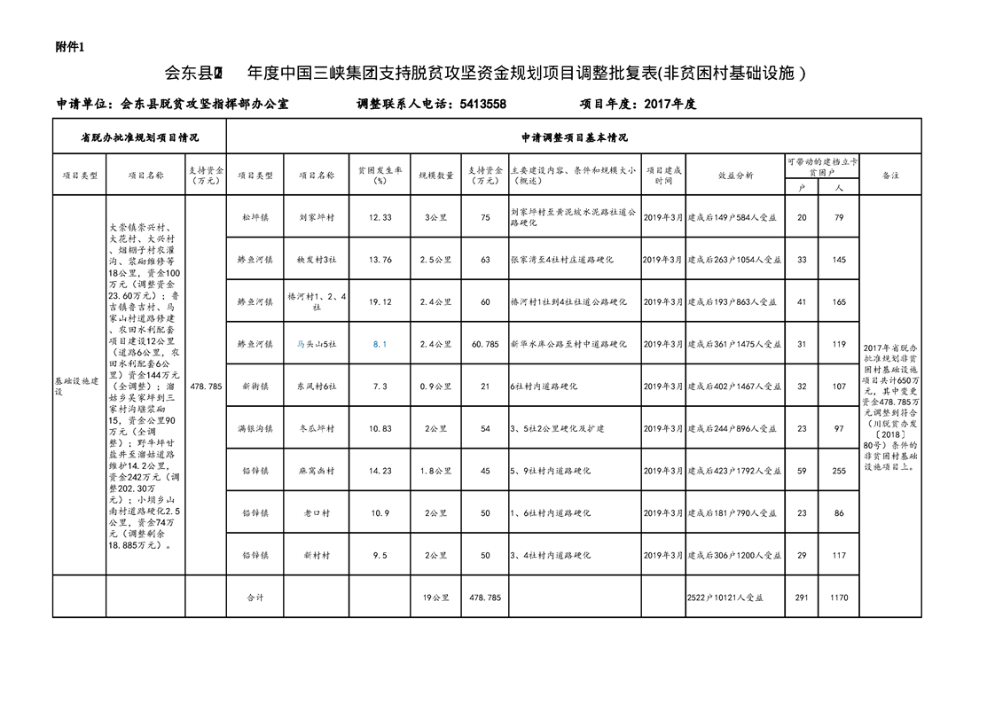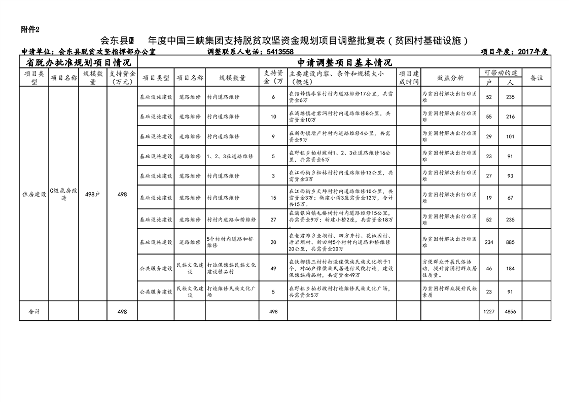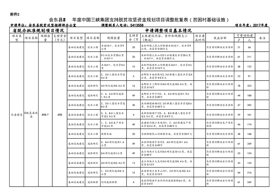 凉山州脱贫攻坚指挥部办公室关于会东县2017年度中国三峡集团帮扶资金项目变更的批复(附件)