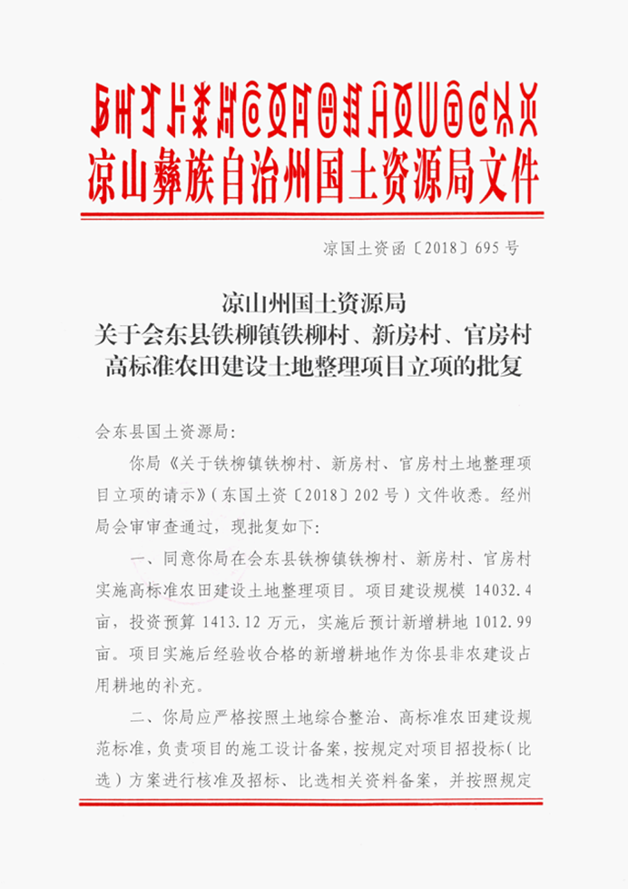 会东县铁柳镇铁柳村、新房村、官房村土地整理项目