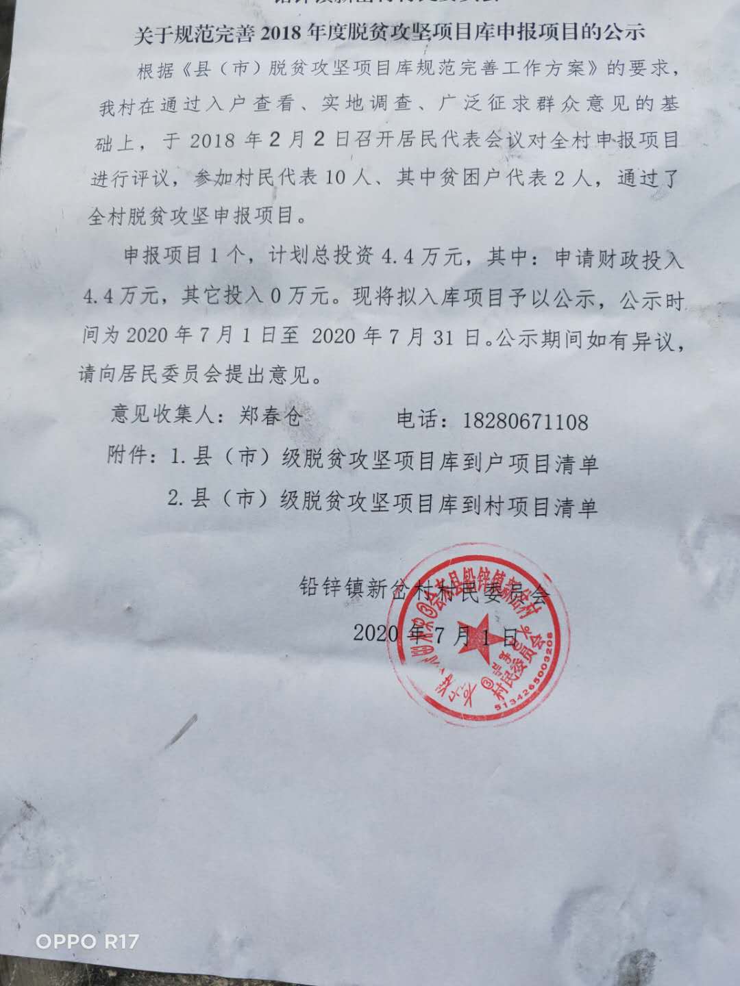 新岔村2018年度专项扶贫资金项目安排计划的公告