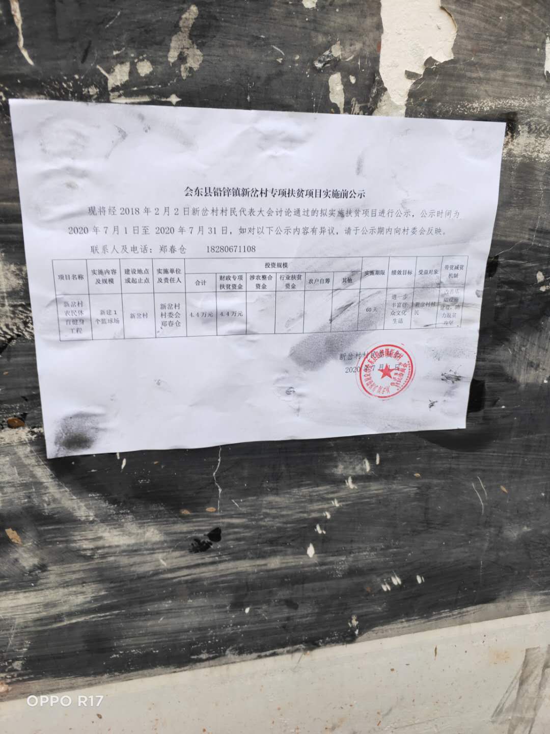 会东县铅锌镇新岔村专项扶贫项目实施前公示