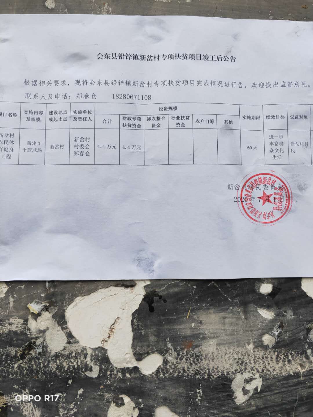 会东县铅锌镇新岔村专项扶贫项目竣工后公告