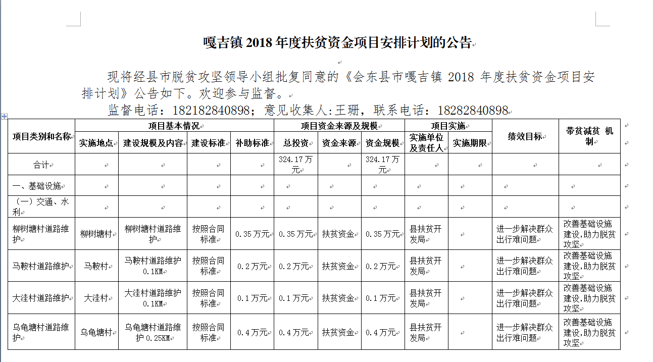 关于2018年度脱贫攻坚项目库申报项目的公示