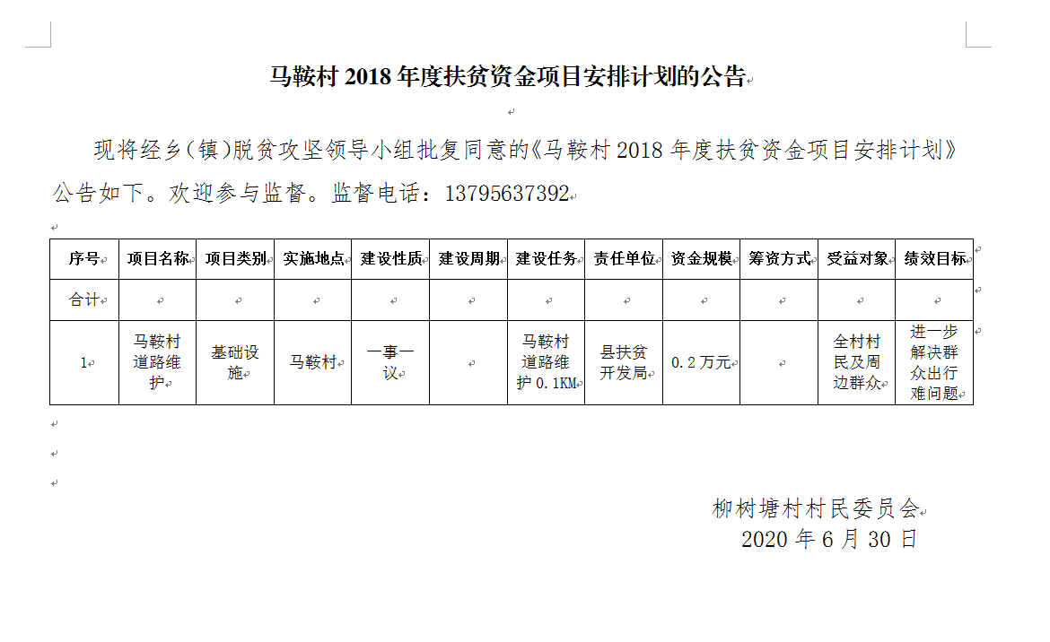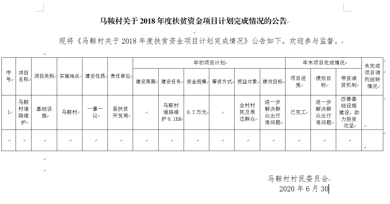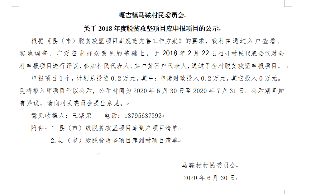 嘎吉镇马鞍村2018年扶贫项目公告公示
