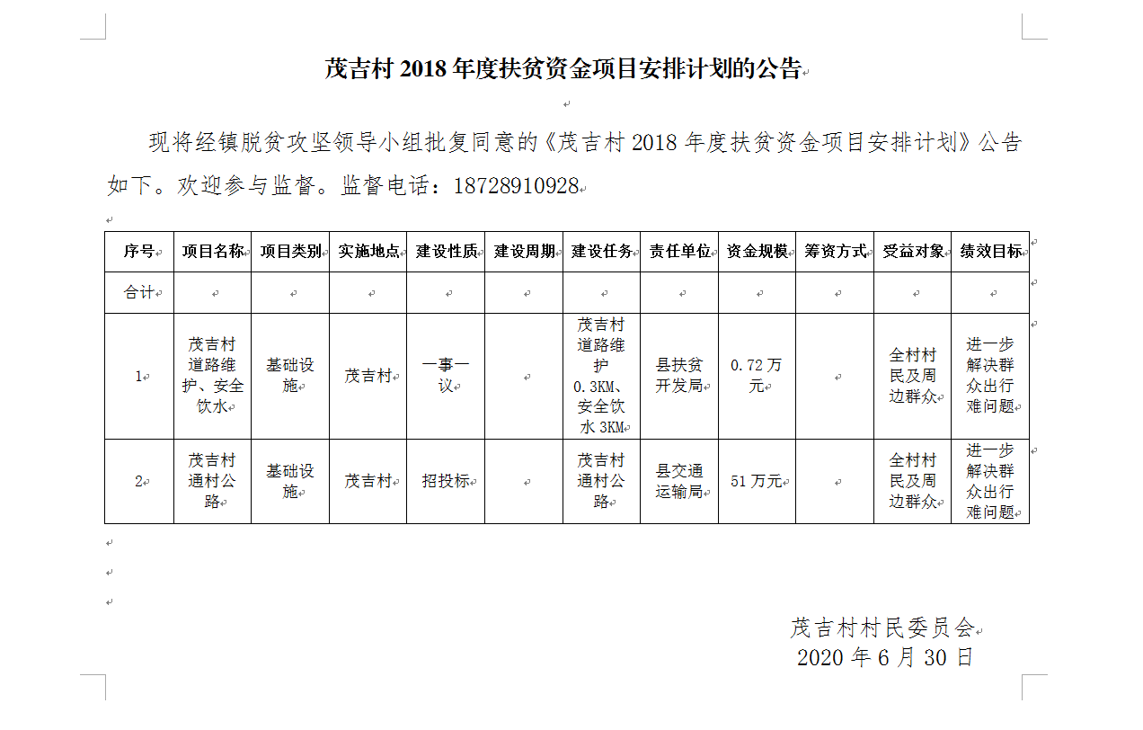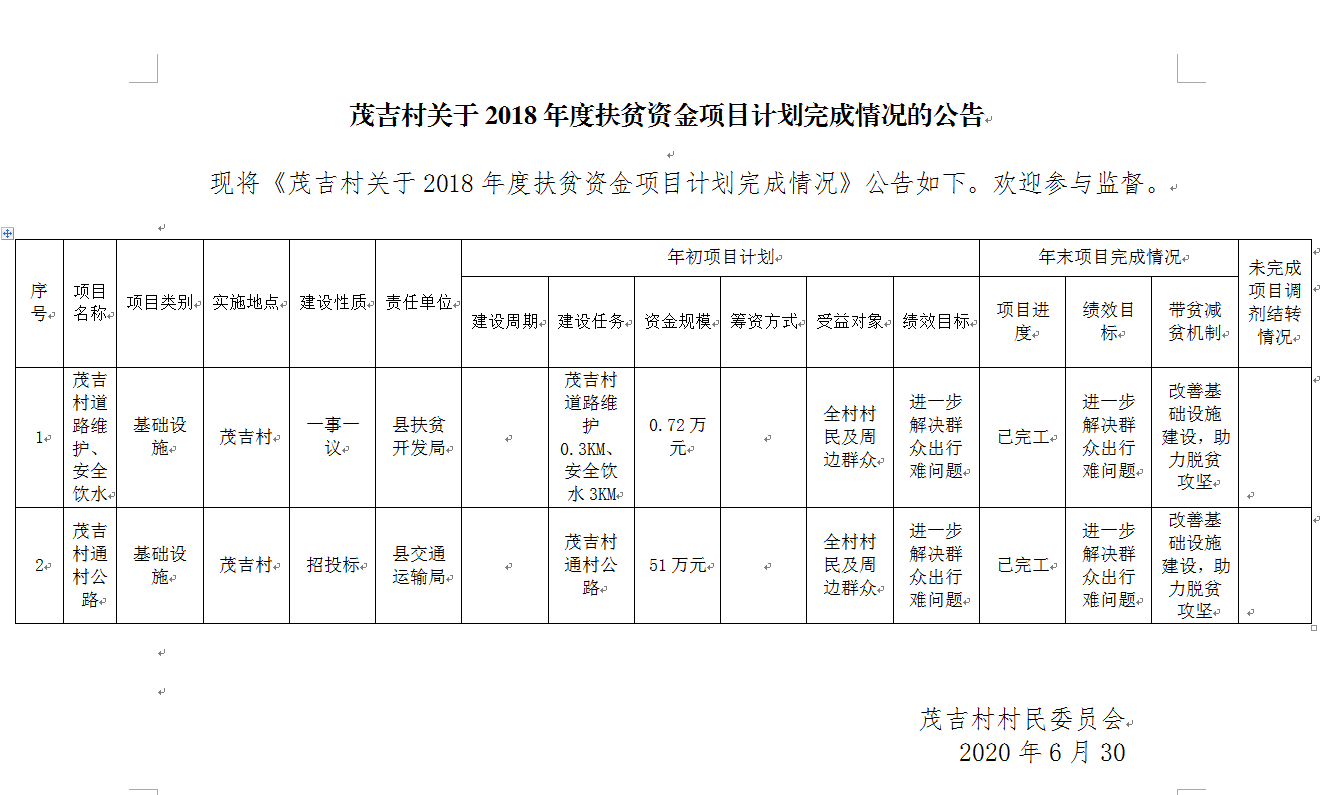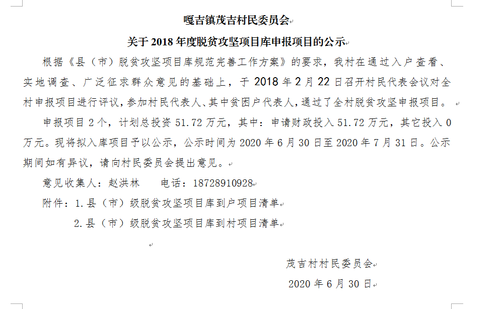 嘎吉镇茂吉村2018年扶贫项目公告公示
