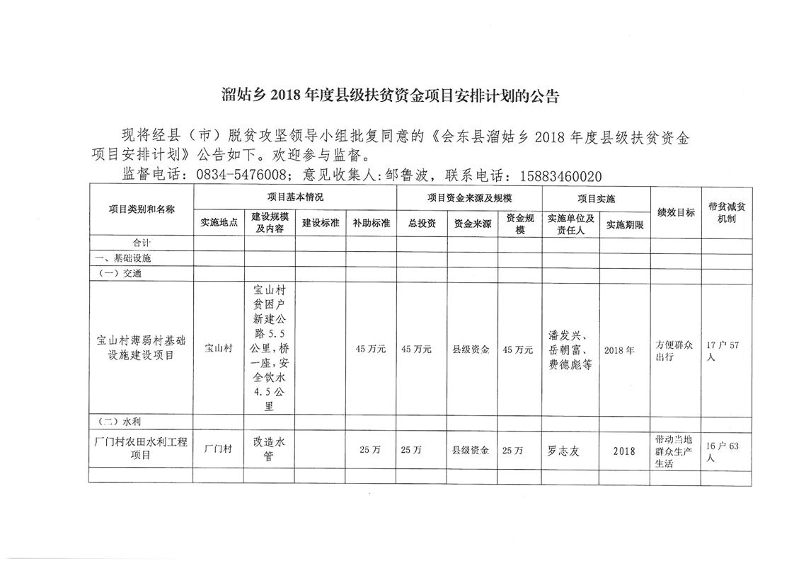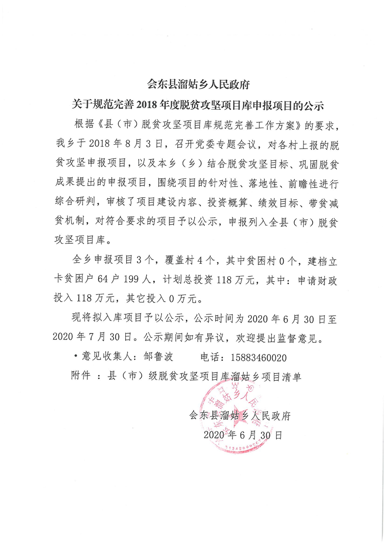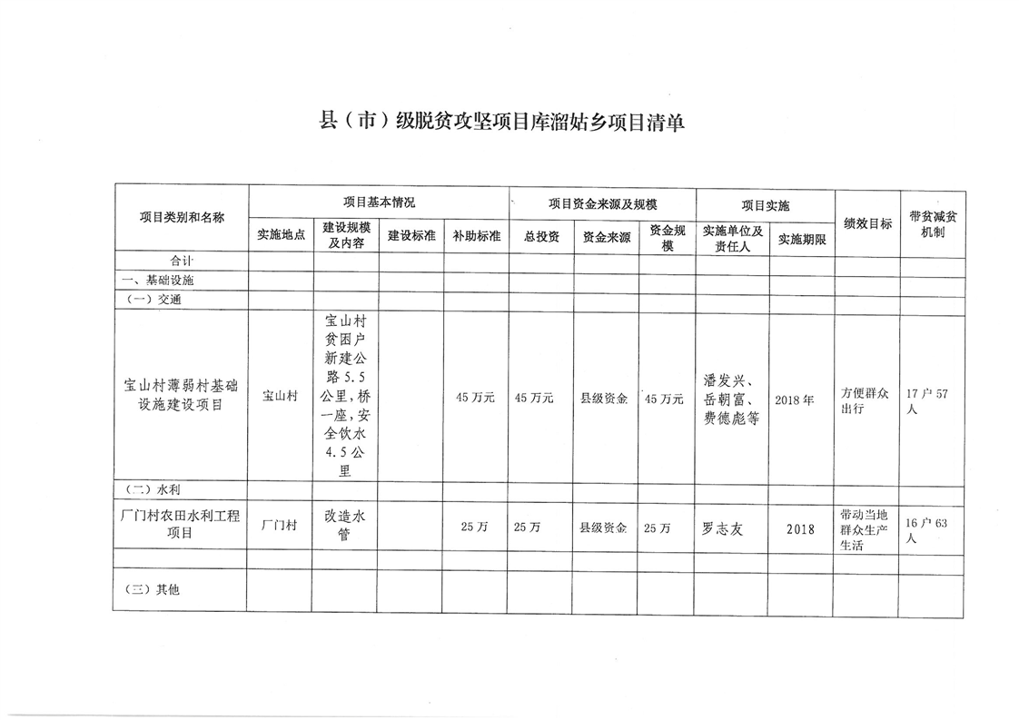 溜姑乡2018年度脱贫攻坚项目库申报项目公示
