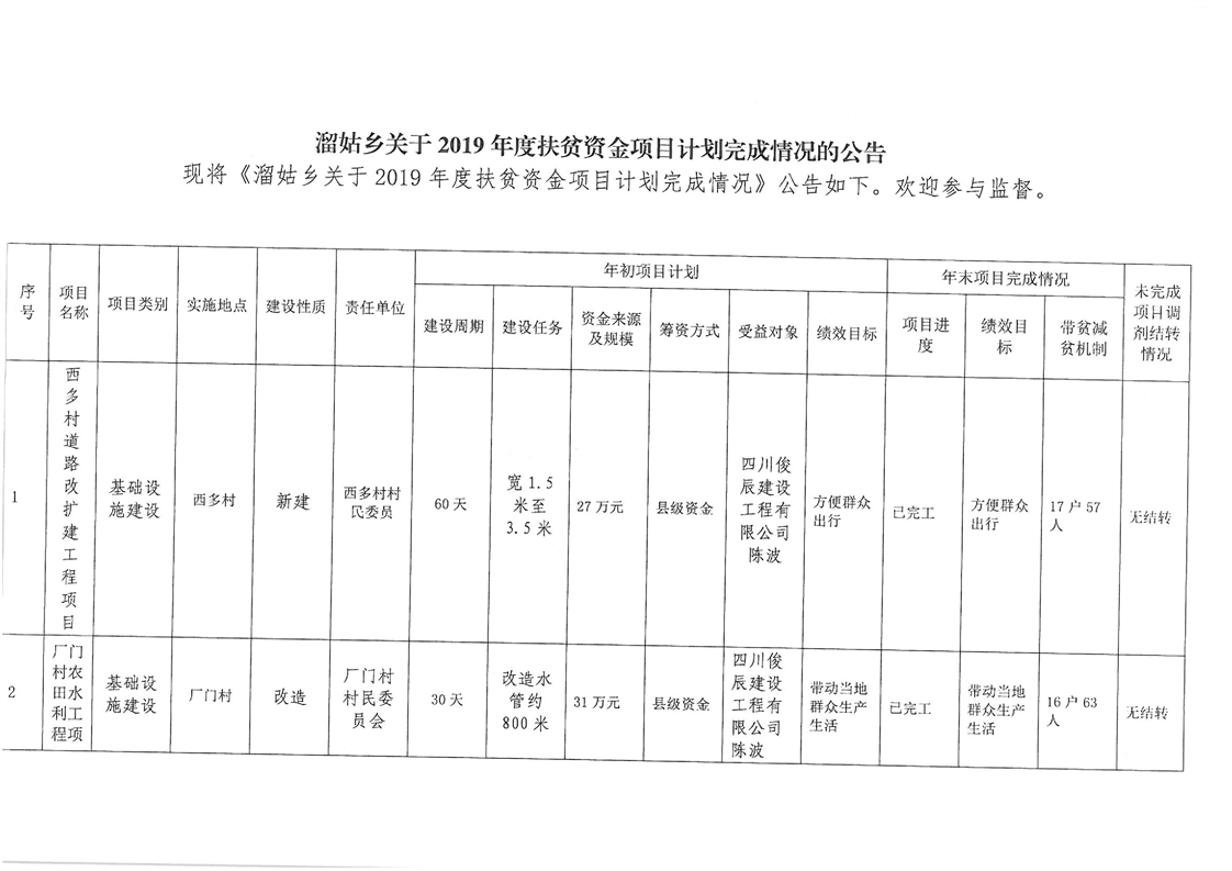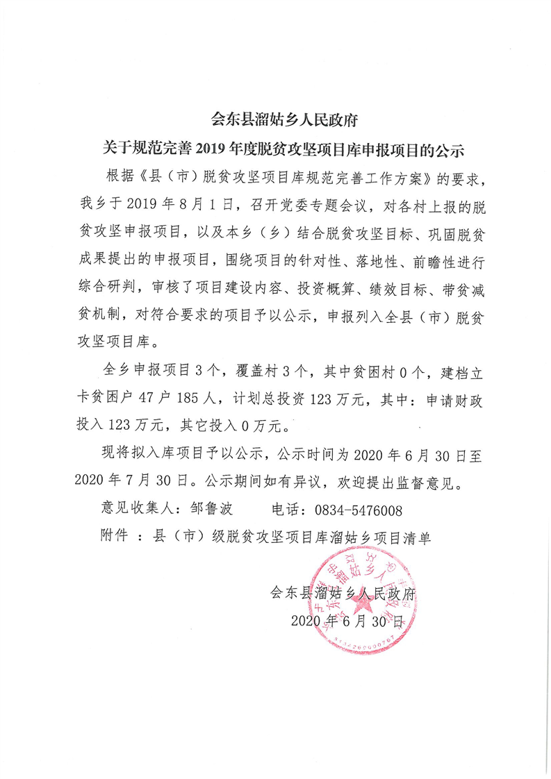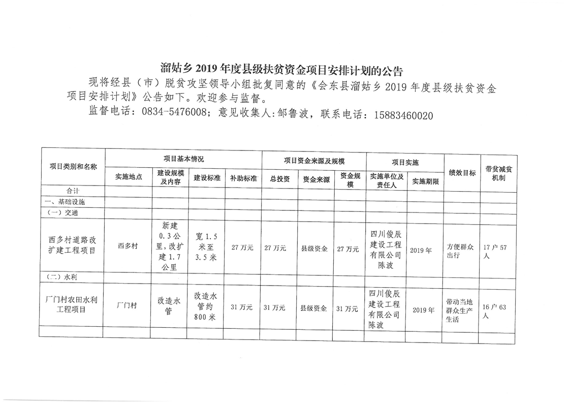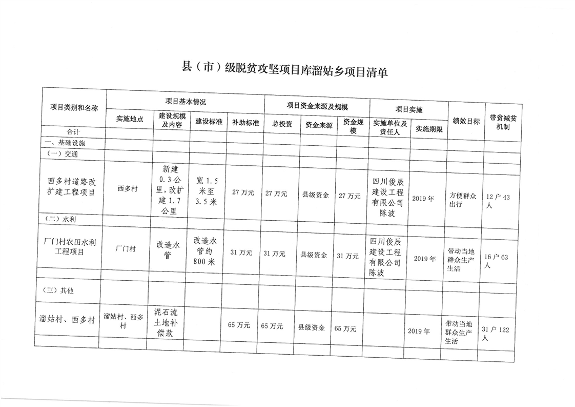 溜姑乡2019年度脱贫攻坚项目库申报项目公示