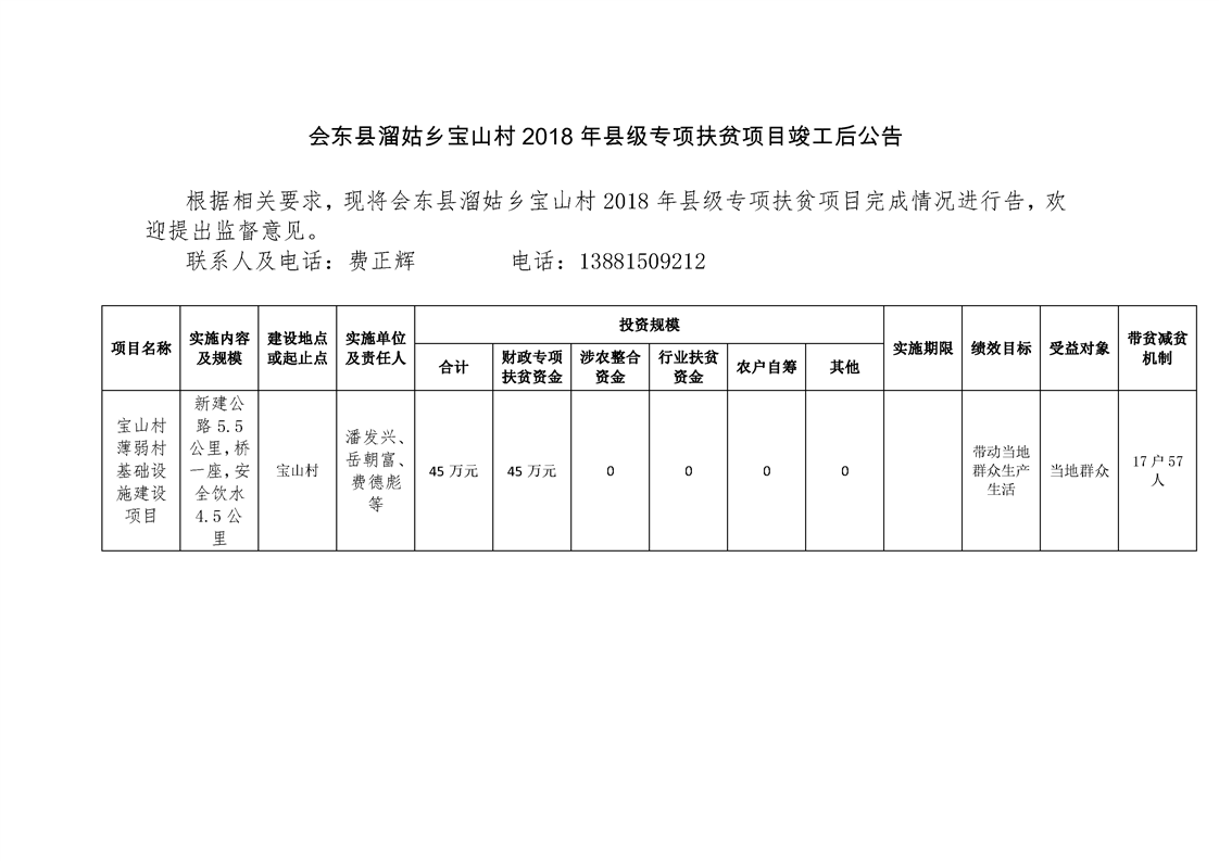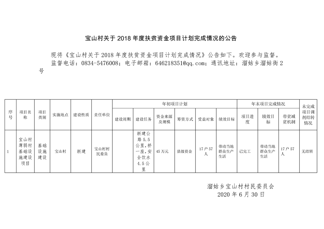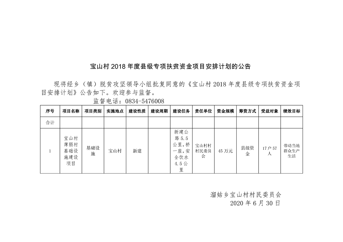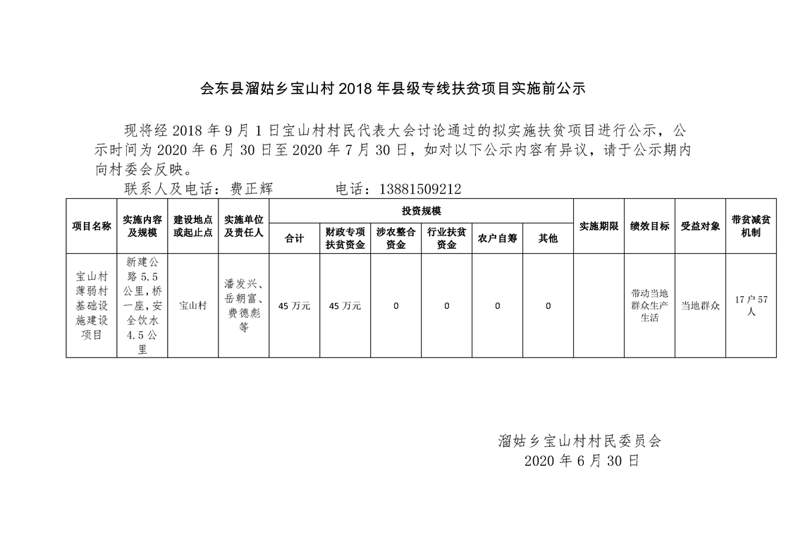 溜姑乡宝山村2018年脱贫攻坚公路建设项目申报公示