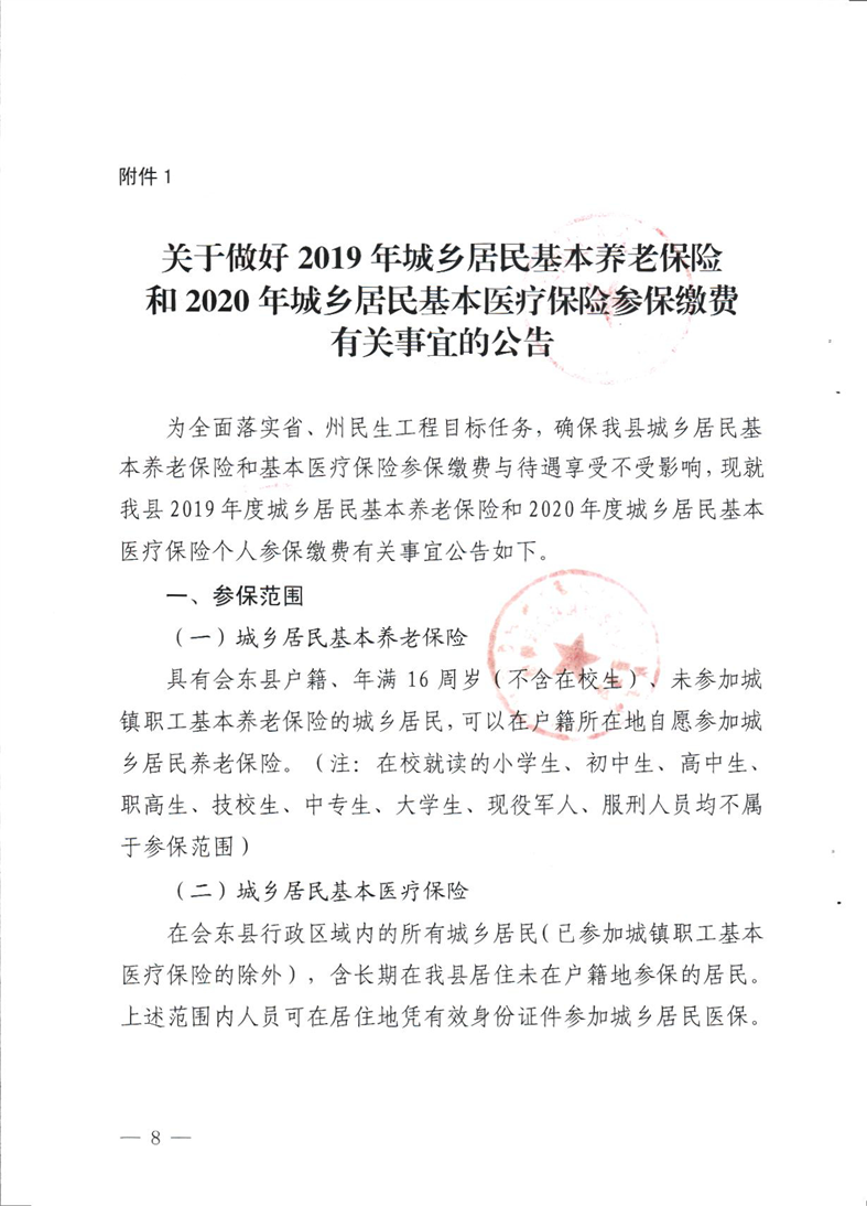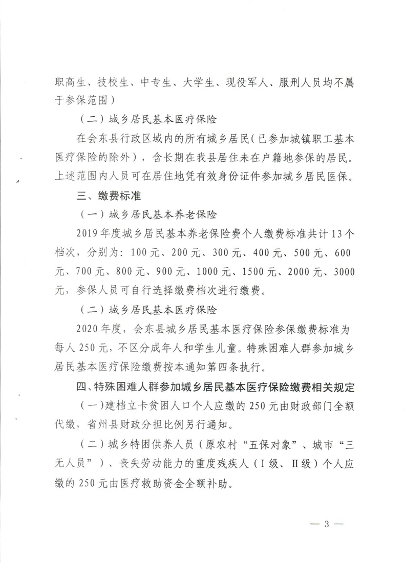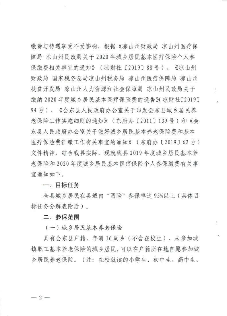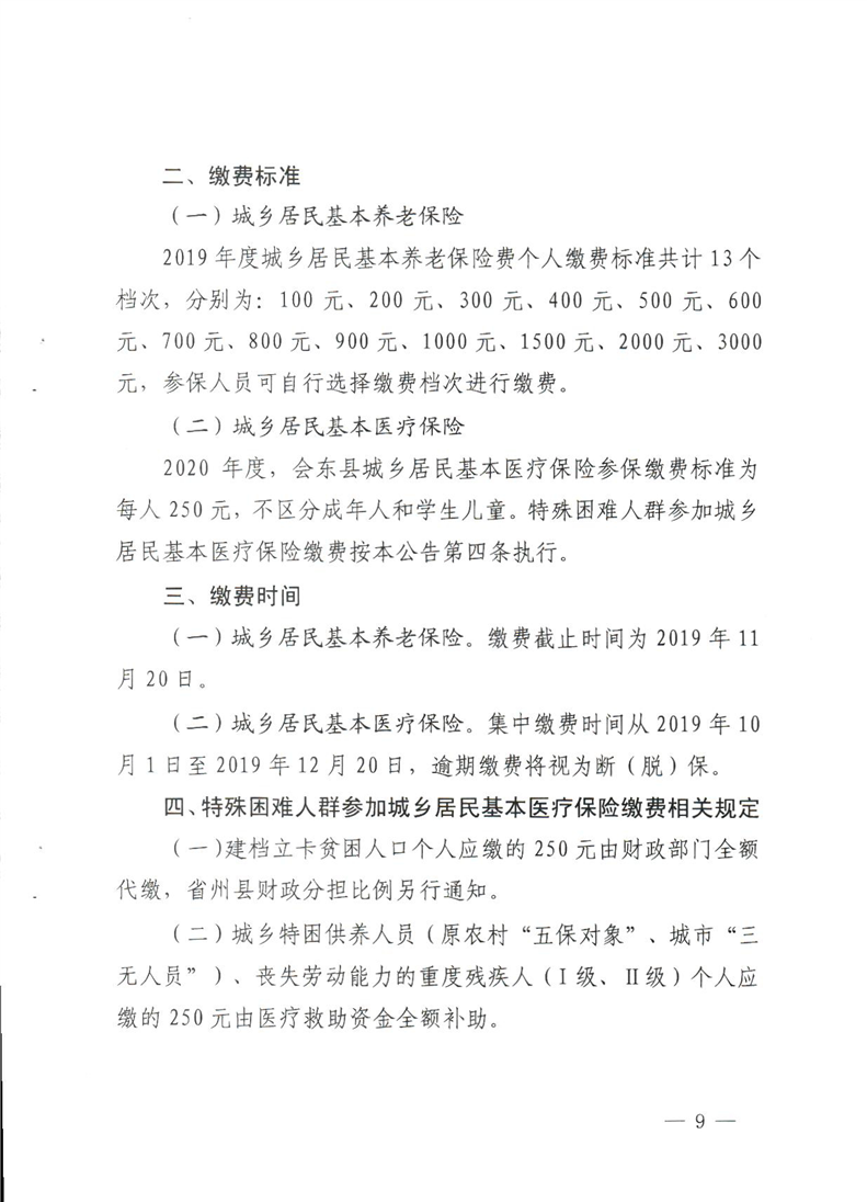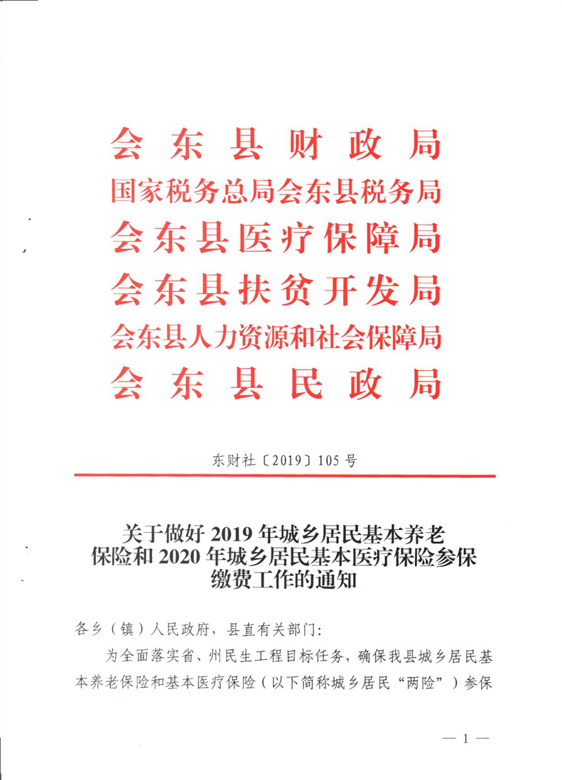 会东县财政局关于做好2019年城乡居民基本养老保险和2020年城乡居民基本医疗保险参保缴费工作的通知
