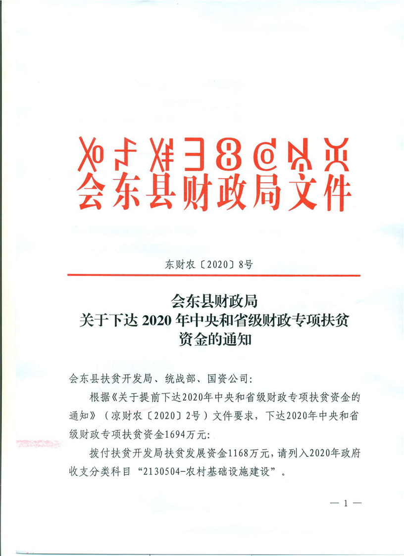 东财农〔2020〕8号 关于下达2020年中央和省级财政专项扶贫资金的通知.pdf