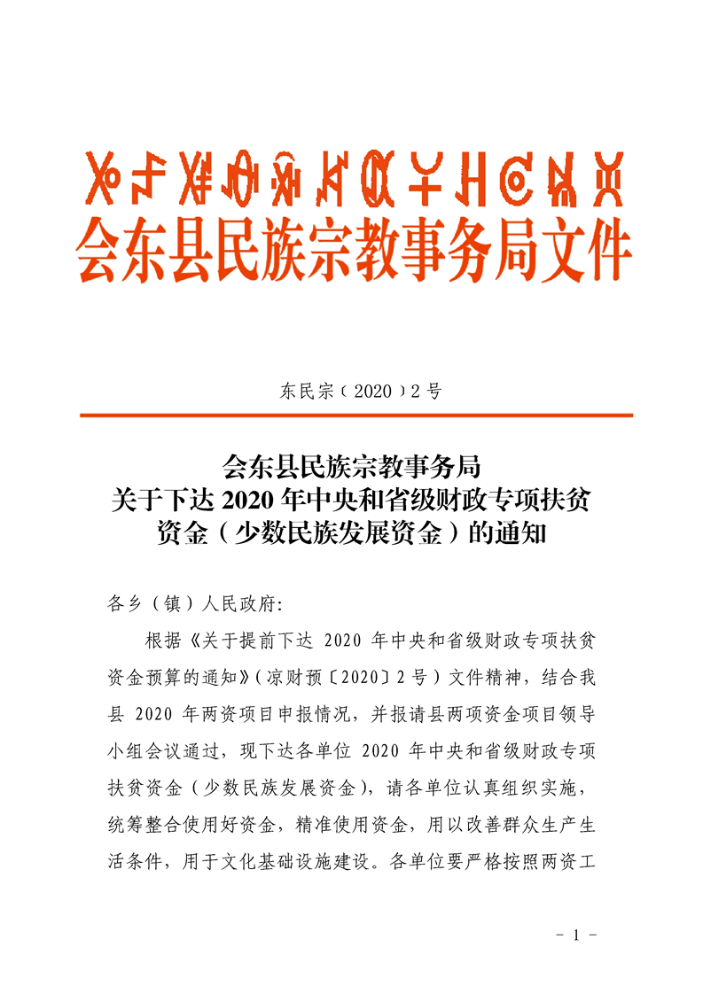 东民宗(2020)2号关于下达2020年少数民族发展资金(第一批)的通知.pdf