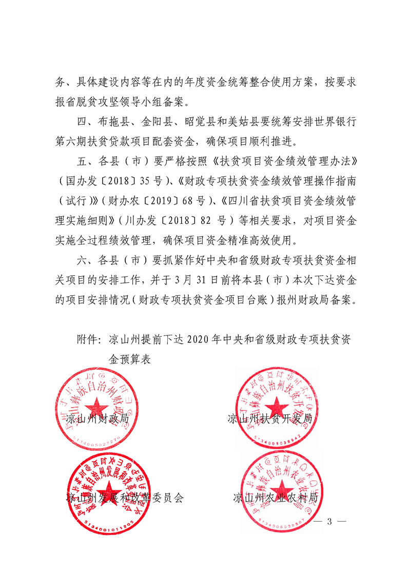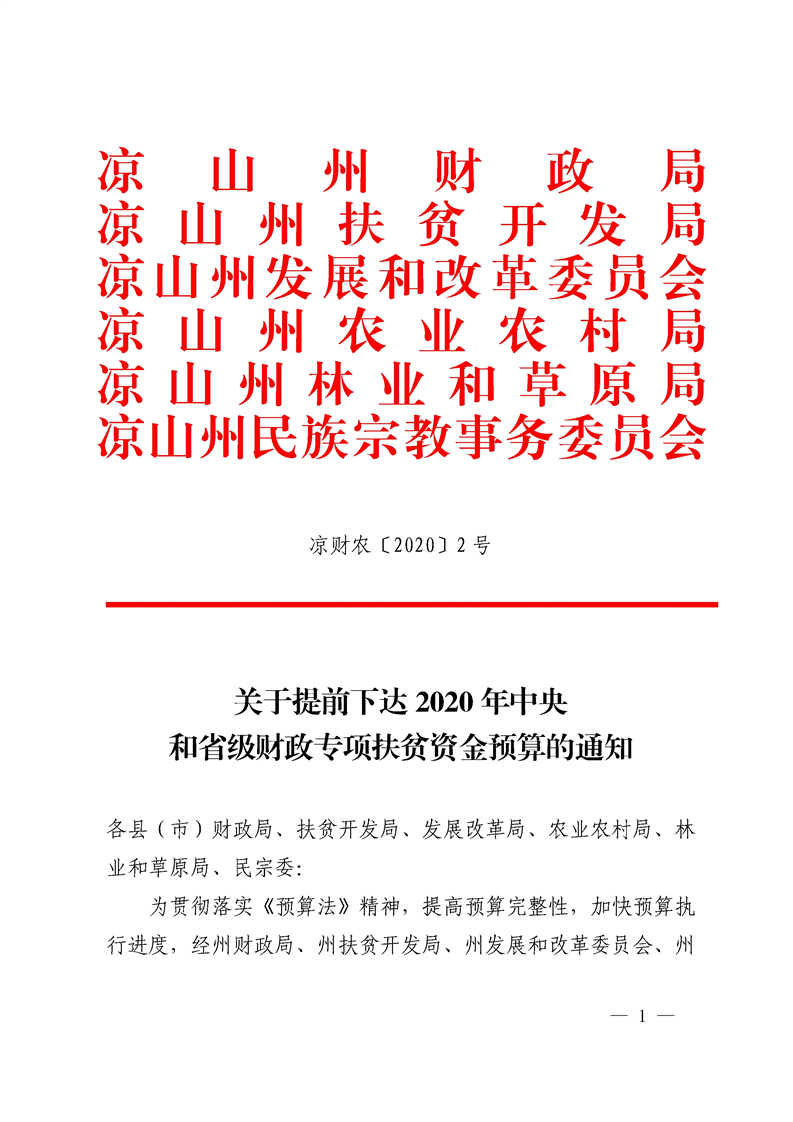 凉财农〔2020〕2号关于提前下达2020年中央和省级财政专项扶贫资金预算的通知.pdf