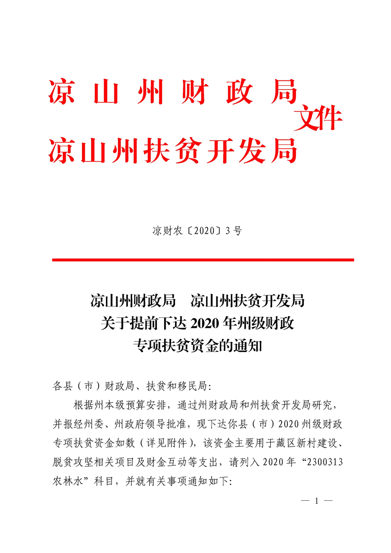 凉财农〔2020〕3号关于提前下达2020年州级财政专项扶贫资金的通知.pdf