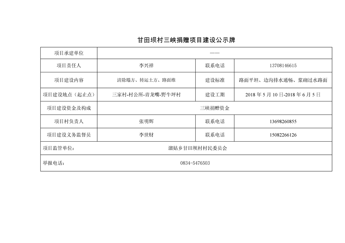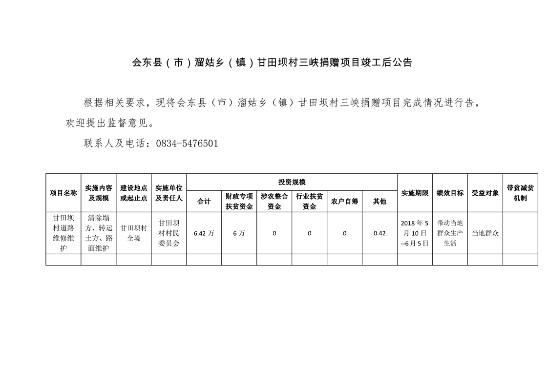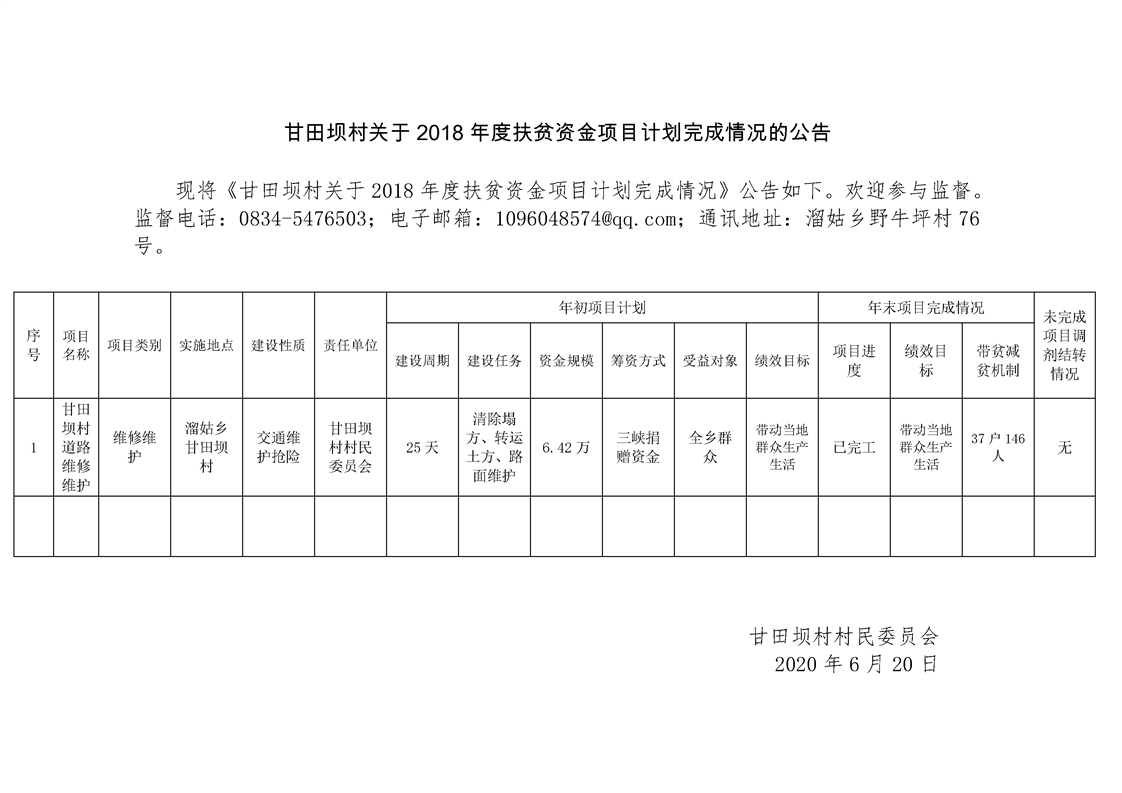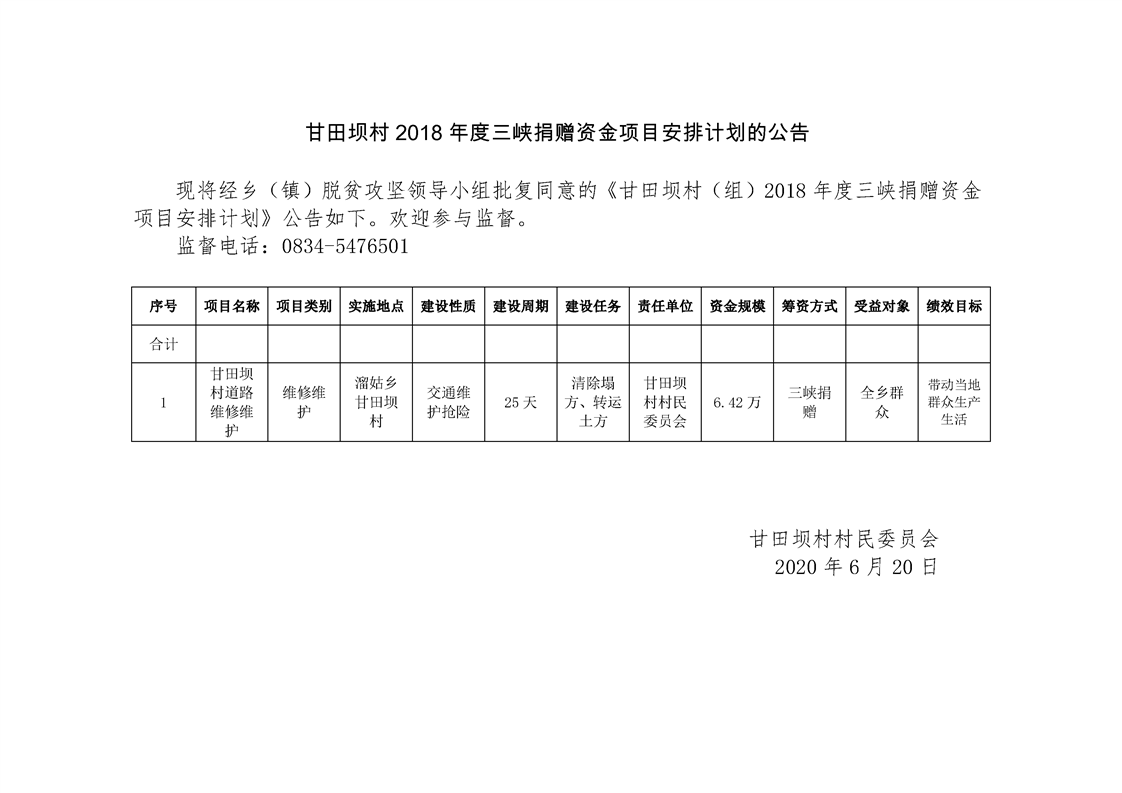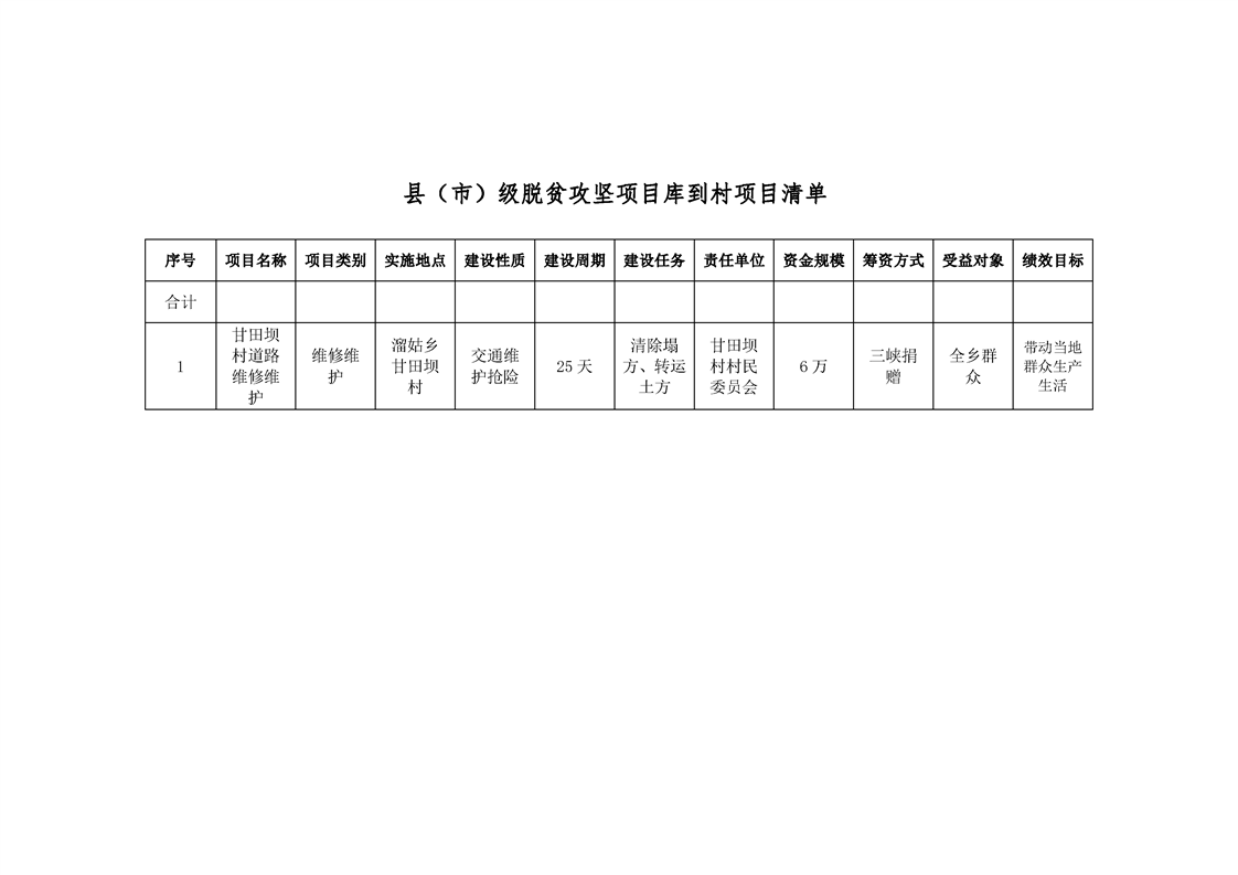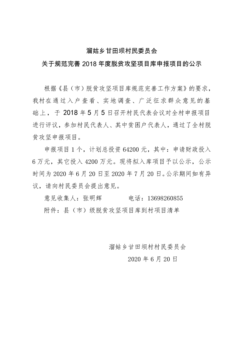 甘田坝村2018年度脱贫攻坚项目库申报项目公示