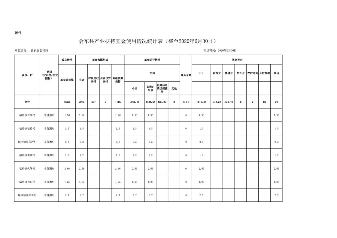 附件:会东县产业扶持基金使用情况统计表(截至2020年6月30日)