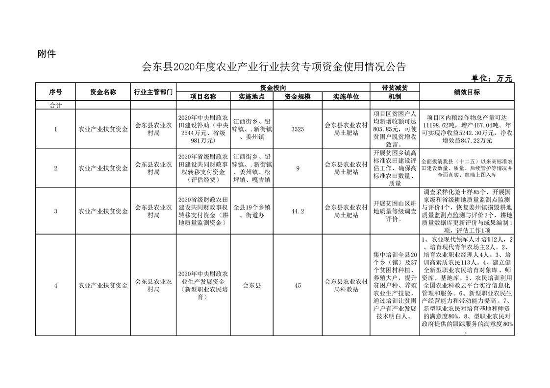 附件:会东县2020年度农业产业行业扶贫专项资金使用情况公告