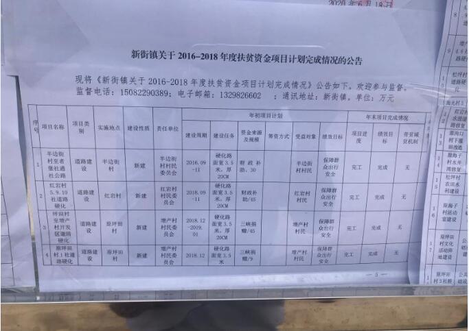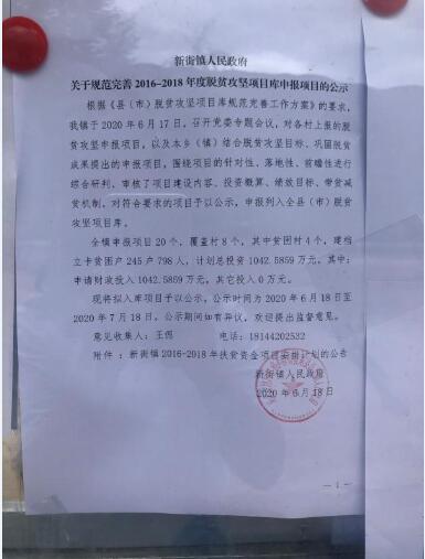 新街镇关于2016-2018年度扶贫资金项目计划完成情况的公告