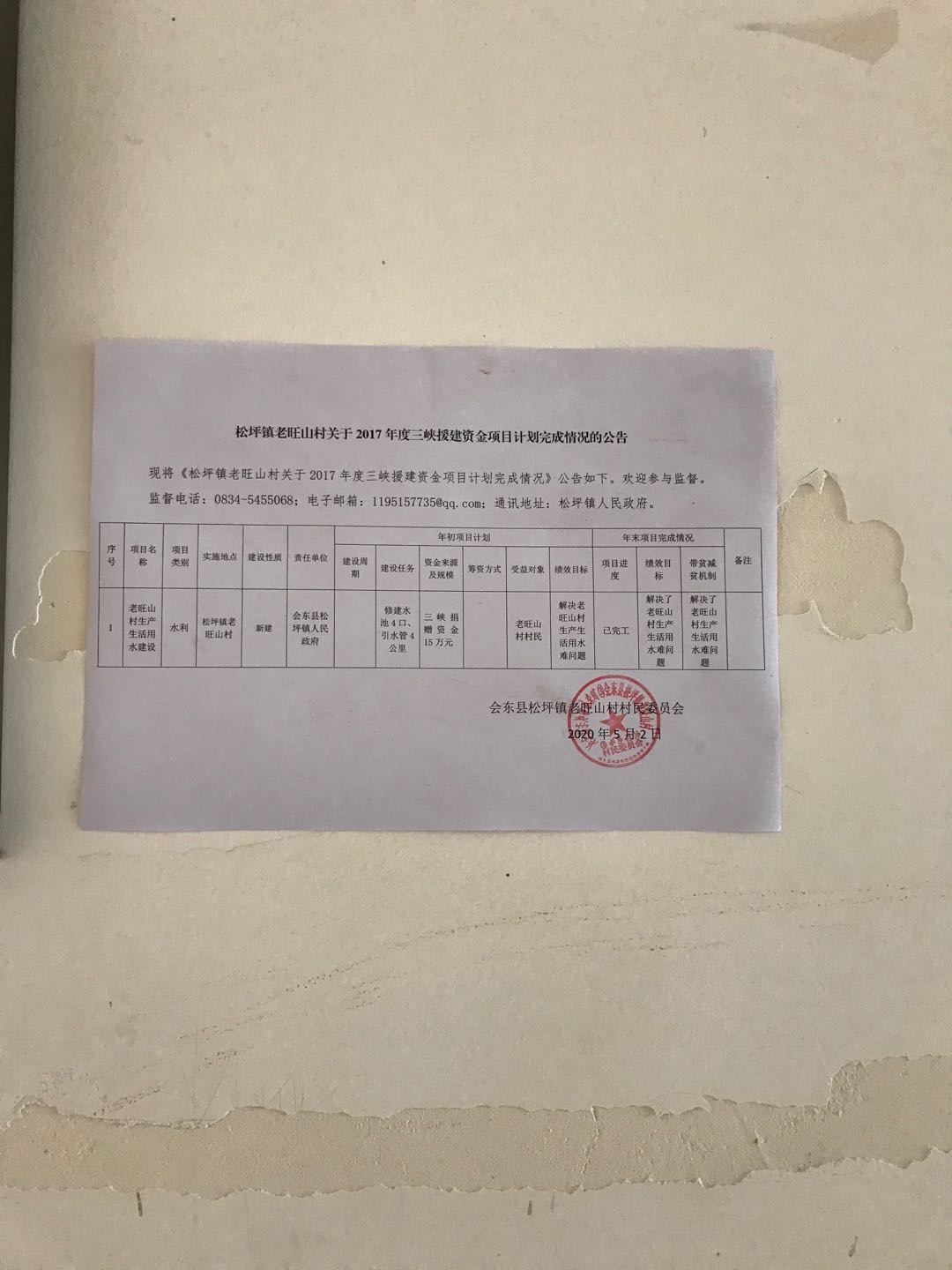 松坪镇老旺山村2017年度三峡捐赠资金项目完成情况公告