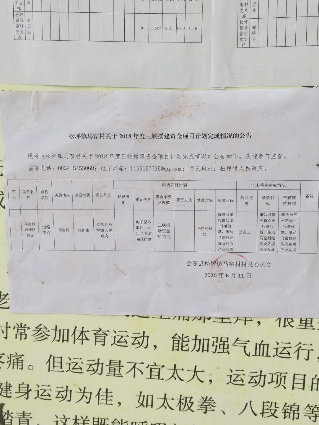松坪镇马窑村2018年度三峡捐赠资金项目完成情况公告