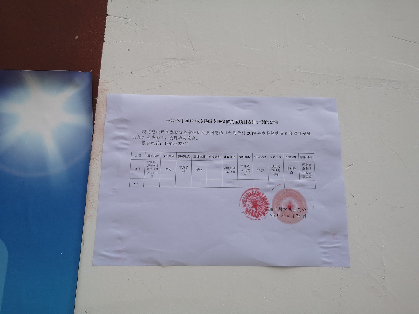 干海子村2019年度专项扶贫资金项目安排计划公告