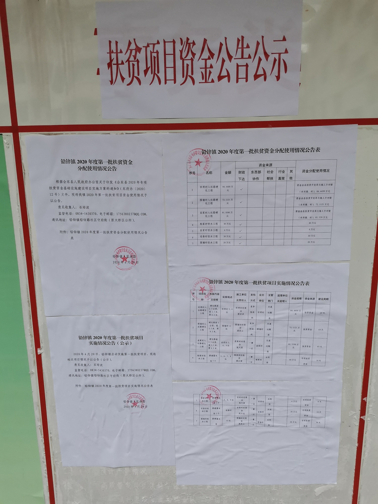 铅锌镇2020年度第一批扶贫资金分配使用情况公告表