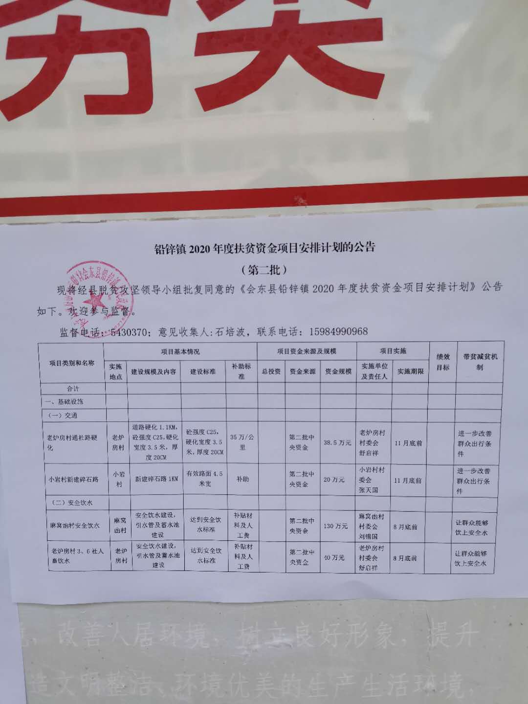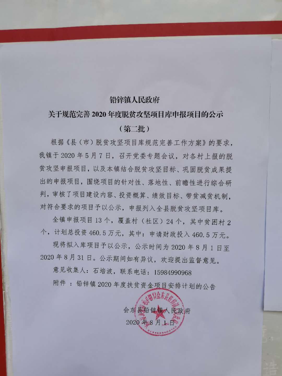 铅锌镇关于规范完善2020年度脱贫攻坚项目库申报项目的公示(第二批)