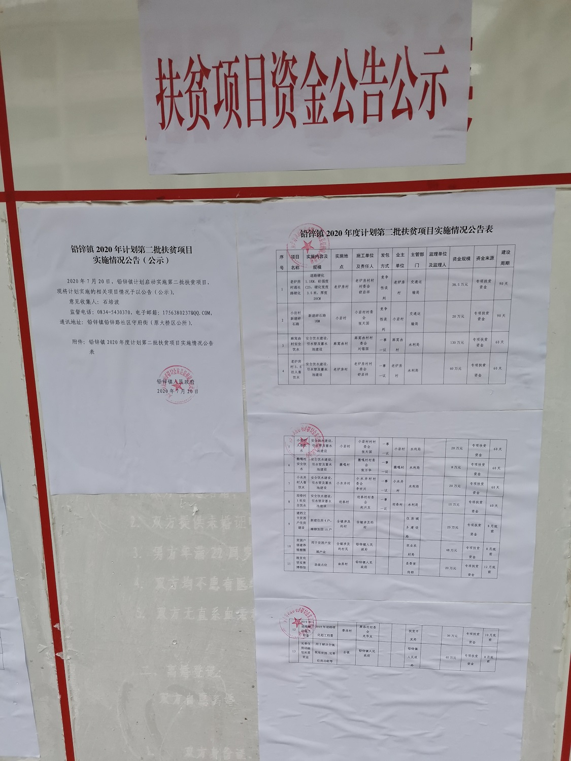 2020年7月20日,铅锌镇计划启动实施第二批扶贫项目,现将计划实施的相关项目情况予以公告(公示)。