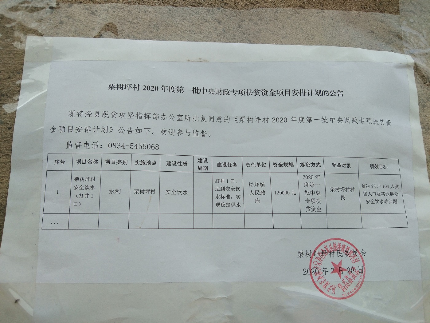 栗树坪村关于2020年度第一批中央财政专项扶贫资金项目安排计划的公告