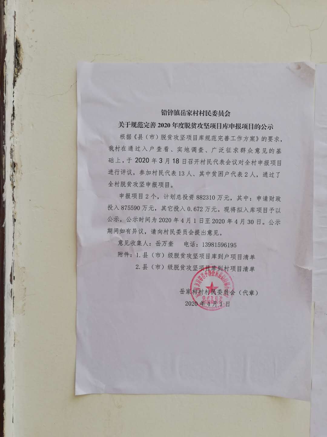 岳家村2020年度专项扶贫资金项目安排计划的公告