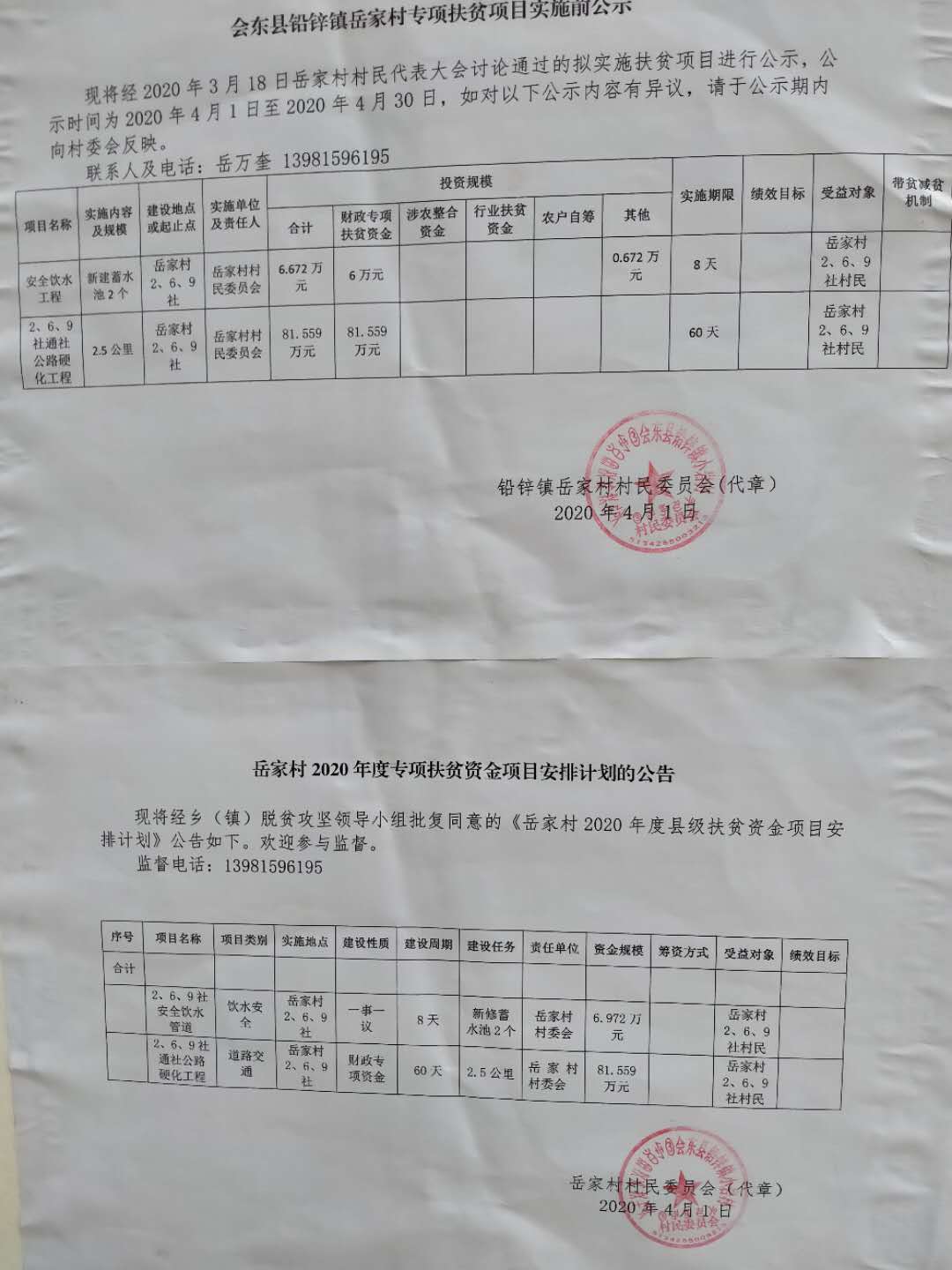 监督电话:13981596195;电子邮箱:××;通讯地址:岳家村村民委员会。