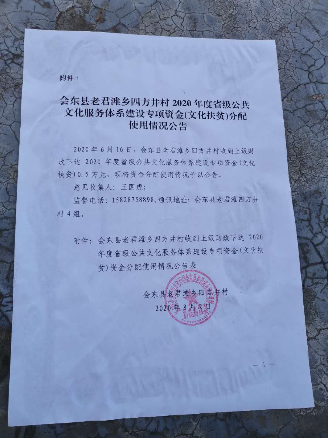 老君滩乡四方井村2020年文化扶贫资金公示