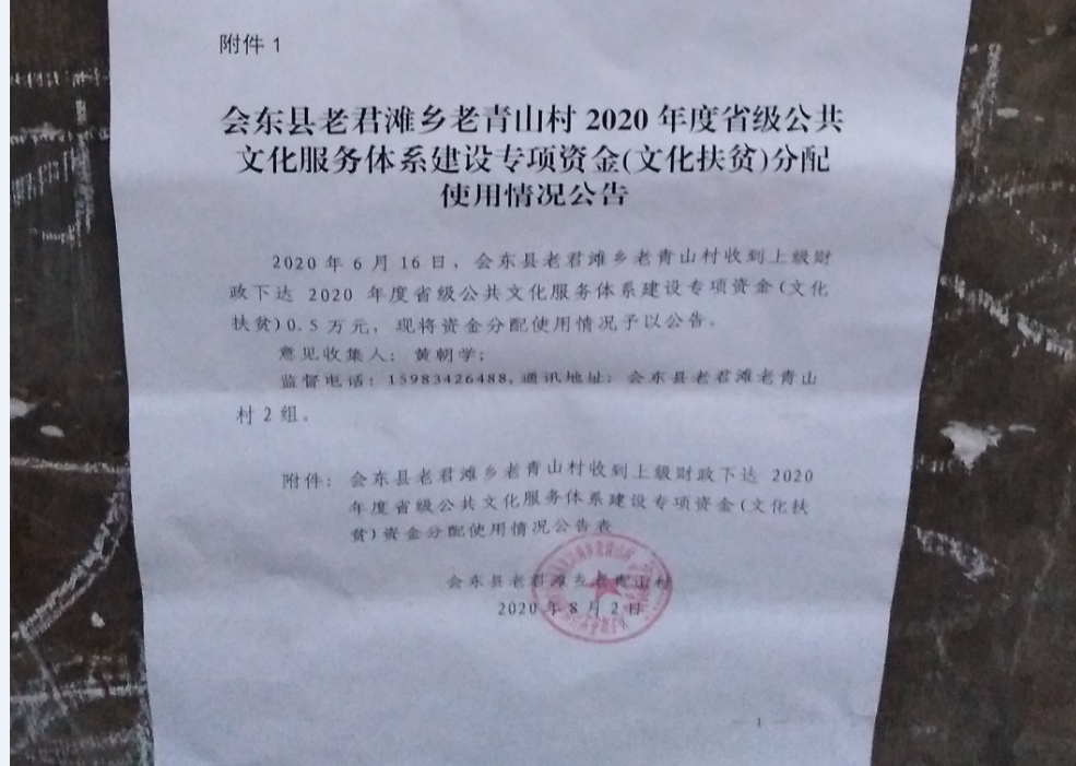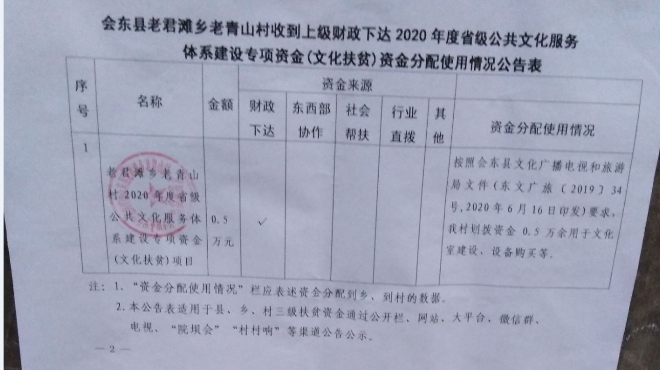 老君滩乡老青山村2020年度文化扶贫项目公示
