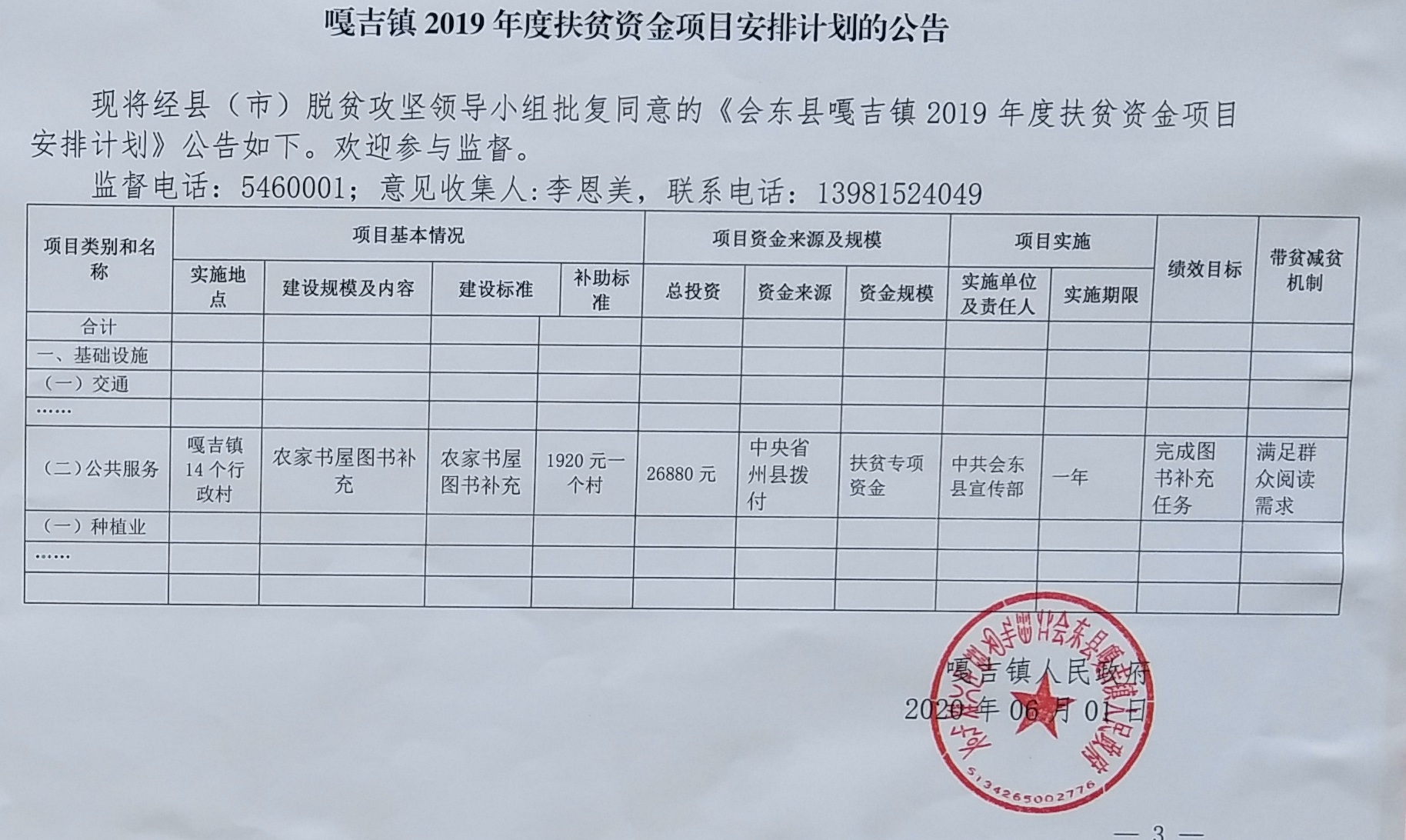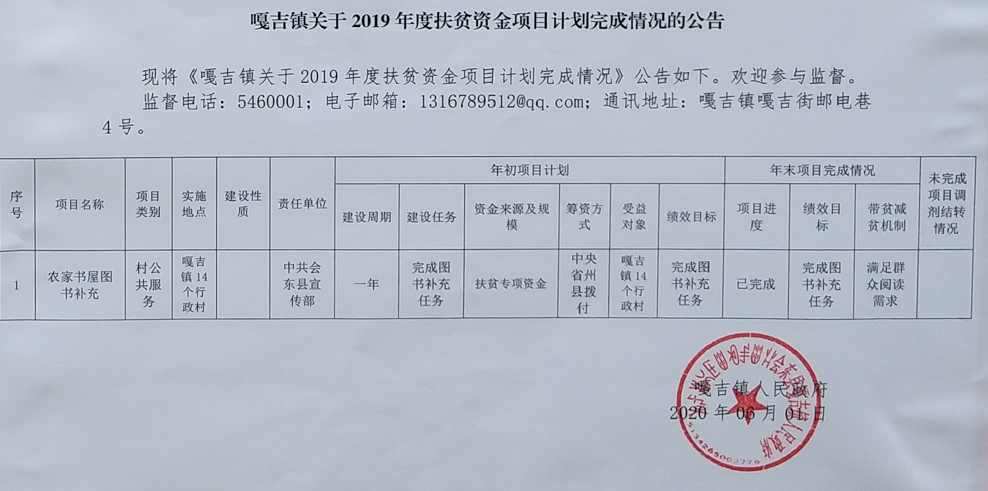 嘎吉镇2019年农家书屋图书补充项目公告公示