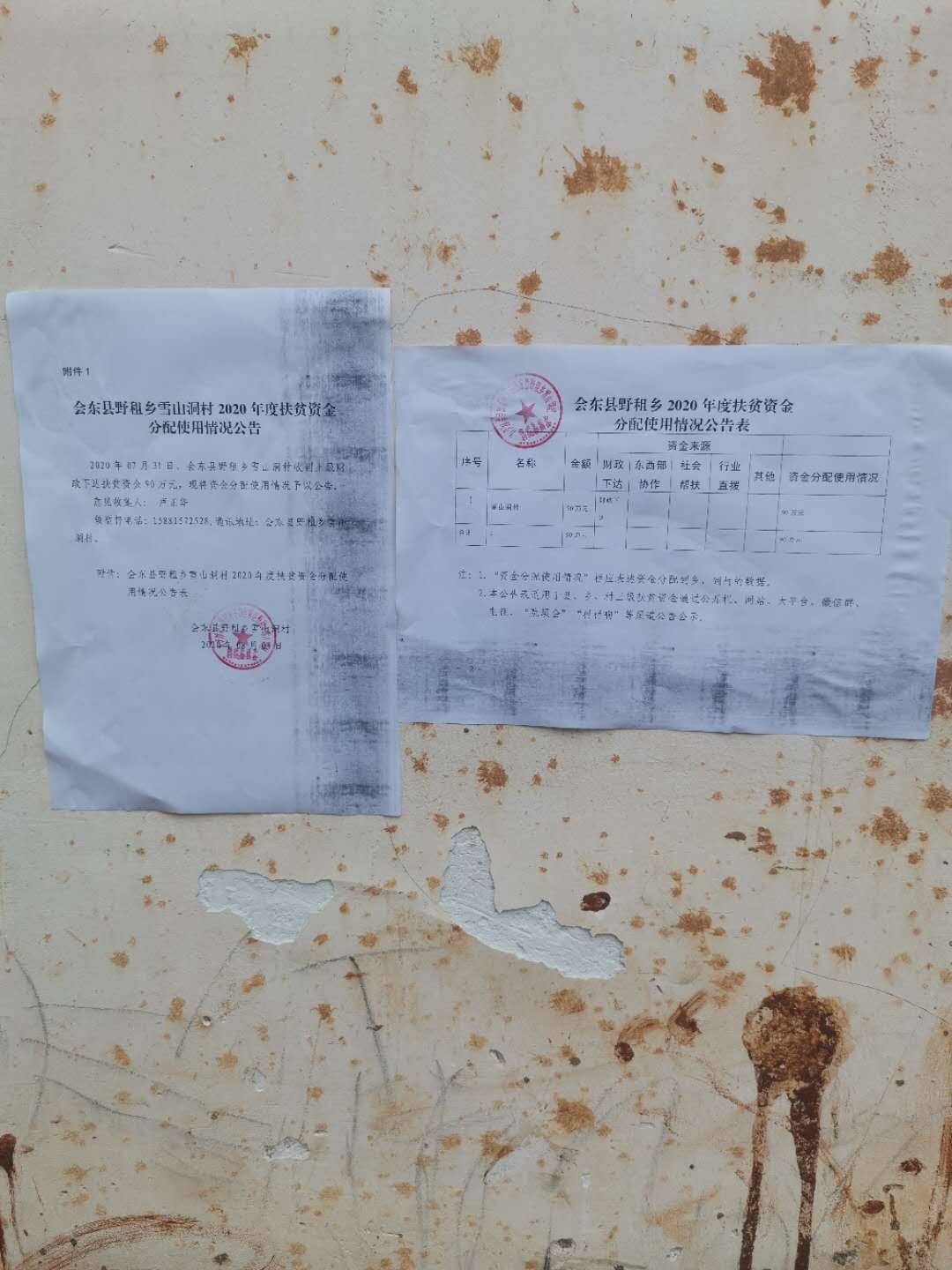 附件:会东县野租乡雪山洞村2020年度扶贫资金分配使用情况公告表