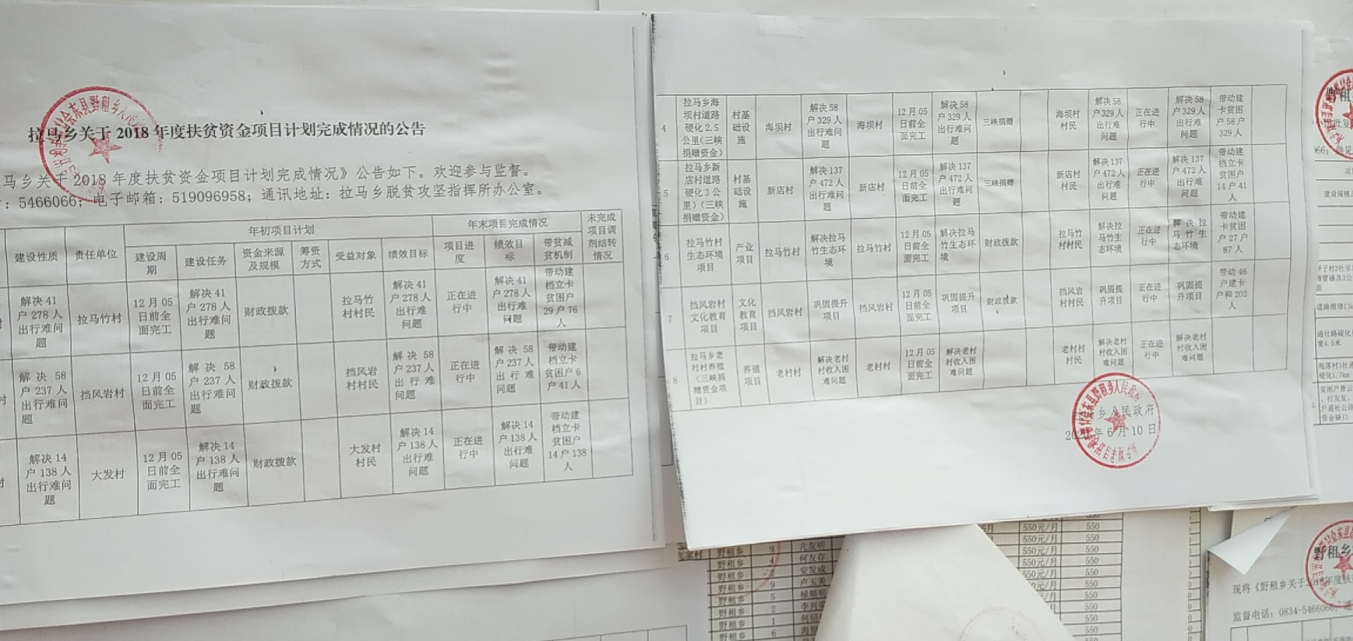拉马乡关于2018年度扶贫资金项目计划完成情况的公告
